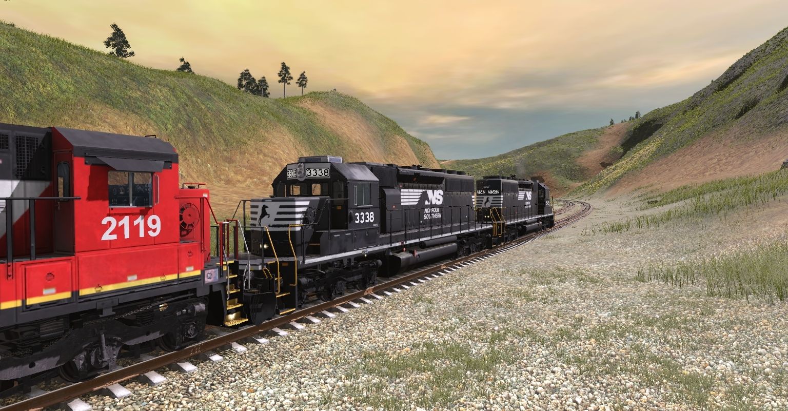 Tags: Trainz Railroad Simulator 2019, Kickstarter County 2, CN C40-8, NS SD40-2 2a1, CN SD40 ph2 no dyn, CP SD9043MAC, BPRR 4 Bay Hopper 1, BPRR 4 Bay Hopper 2, BPRR 4 Bay Hopper 4, BPRR 4 Bay Hopper 3, CN 4000cf Rotary Gondola, BN 62Ft. Bulkhead (early era), BN 60Ft.9In. woodchip gondola 70's dirty