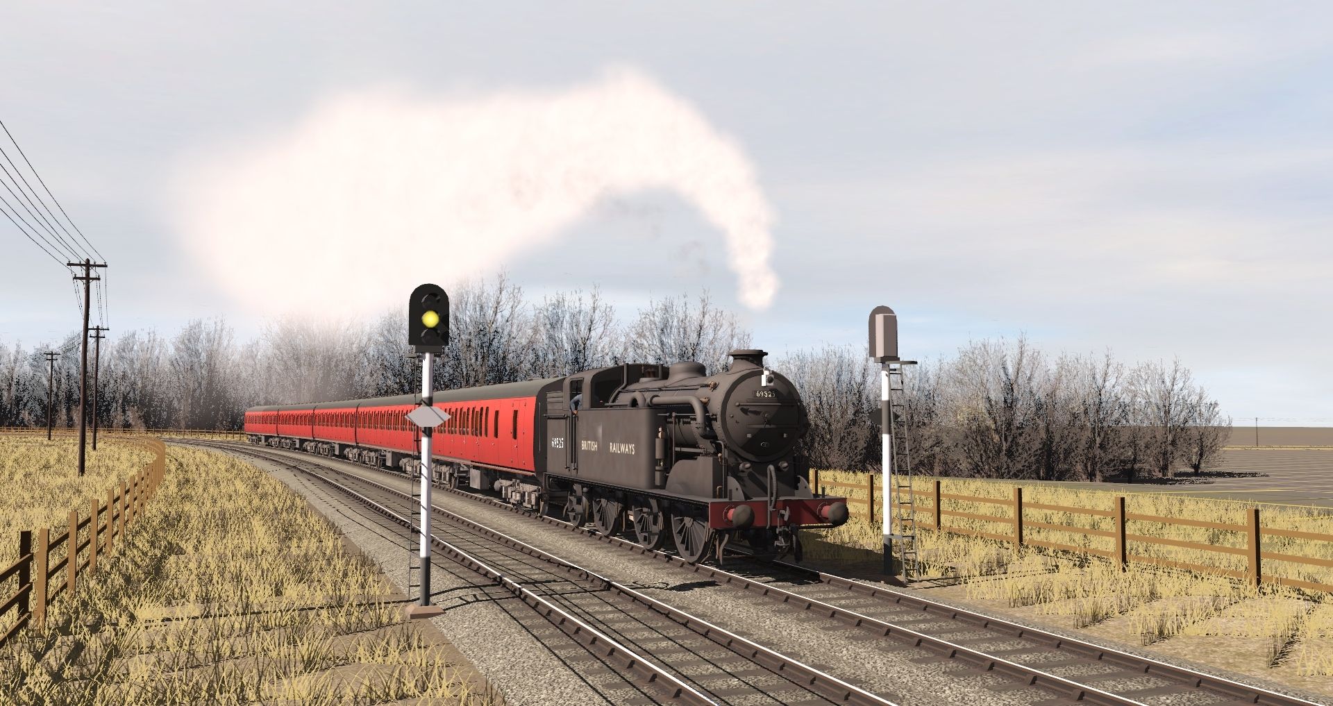 Tags: Trainz Railroad Simulator 2019, Hornbyton (UK), Default, BR N2 Condenser British Railways Unlinned Ross Pop, BR Mk1 Sub. BS Carmine, BR Mk1 Sub. SO Carmine