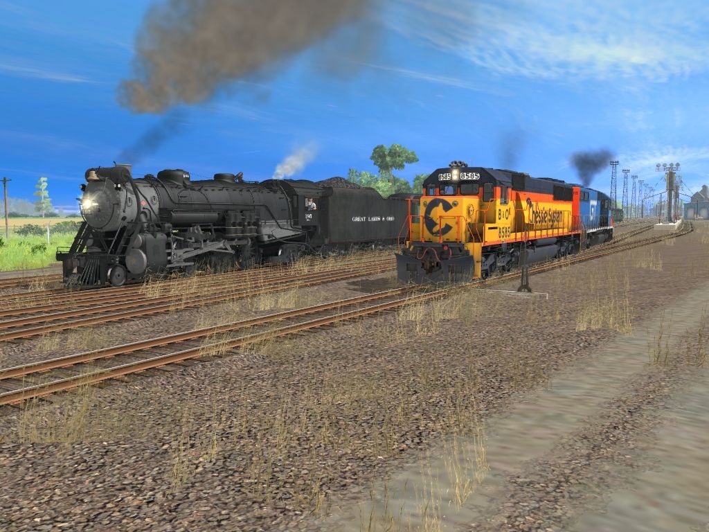 Tags: Trainz: A New Era, Adrianville, Adrianville Finale PhotoOp, GL&O 195 Engine, Chessie SD50 (B&O), GTW SD40, GL&O 195 Tender, GL&O Combine Heavyweight, GL&O Coach Heavyweight, DT&I EV caboose, VIA Rail Budd 8138 HEP1 Coach, Observation-Business Car Georgia 300, Pullman 12-1-1 Brownish Green Stripe, CN P70 Coach