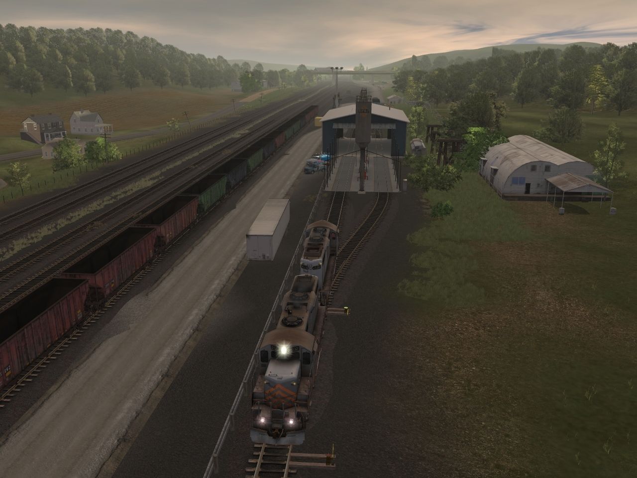 Tags: Trainz: A New Era, Coal Country, Tourist Train, RPPX GP9 chop nose, RPPX 100 Ton Hopper, RPPX Coach Car Dome, RPPX Coach Car #20, RPPX Coach Car #22, RPPX Transfer Caboose, RPPX 60Ft.9In. scrap gondola, RPPX Coach Car #21, SVLX Log Rack Yellow