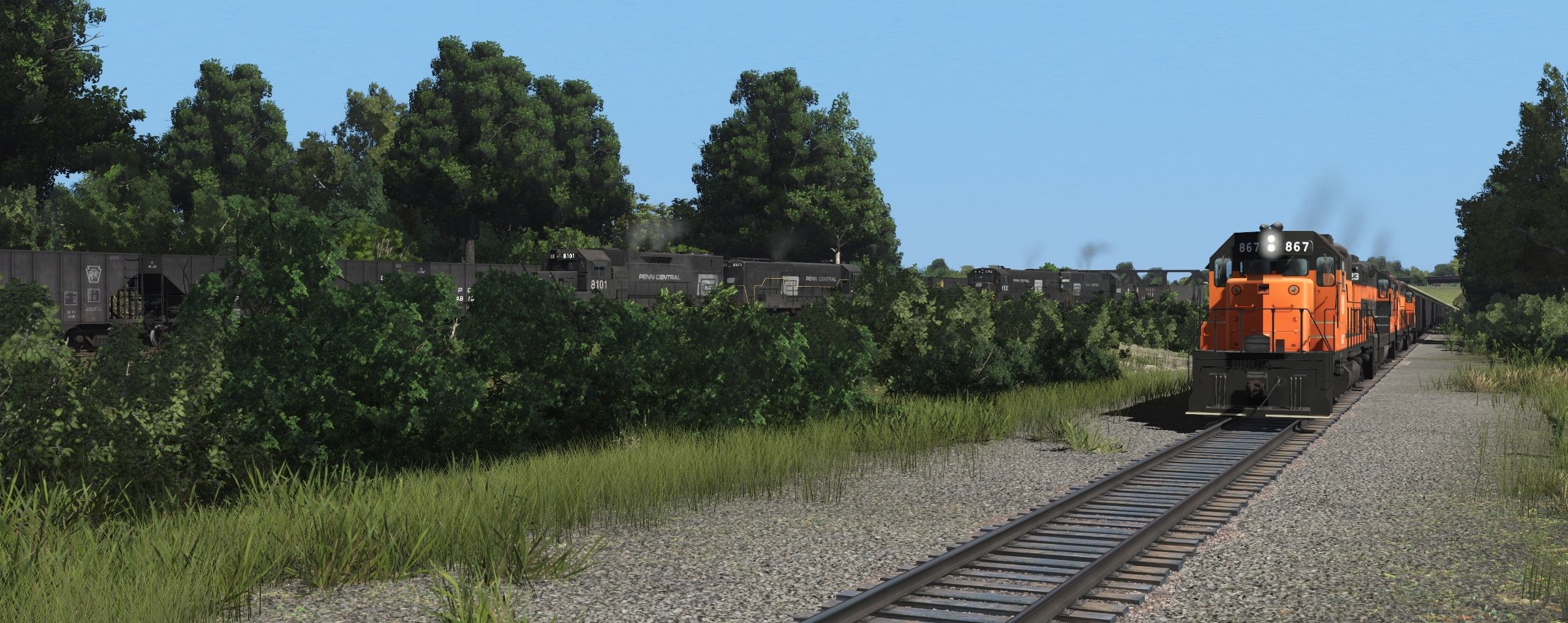 Tags: Trainz Railroad Simulator 2019, EL mahonning Division xxxx, Default, BLE 1973 SD38AC 867, BLE 1973 SD9 823, PC GP38-2, BLE 1973 SD38AC 865, PC ex-NH U25B ph4, BLE 1973 SD38 861, PC ex-PRR U25C ph3a, PC SD38, PS-3 2 Bay GA, G26 gondola Erie, NW 100 Ton Hopper 2