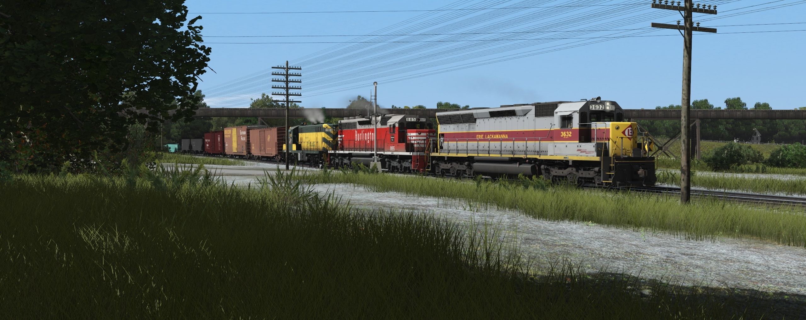 Tags: Trainz Railroad Simulator 2019, EL mahonning Division xxxx, Default, EL SD45, CB&Q SD40, CNW GP7 Route of the 400, PC SD38, EL U25B late 2513-2527, EL GP35, SP PC&F 6033, PRR Boxcar X50a, PRR 4 Bay H62R 1, PS-3 2 Bay GA, P&LE Greenville Gondola