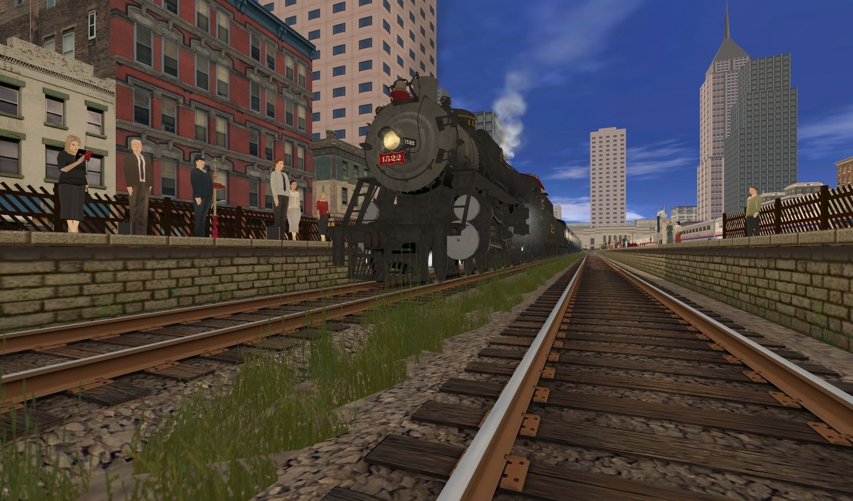 Tags: Trainz: A New Era, City and Country USA - Reforged, Frisco 1522 Engine, Amtrak P32-8BWH Ph IV, Amtrak F40PH 398, Mountain Type, Bell 412EP Helicopter, Frisco 1522 Tender, Frisco 1522 Aux Tender, Superliner I Coach Bagagge 31005, Frisco 1522 01 Tool Car Black Gold, Superliner II Coach 34120, Frisco 1522 02 Dorm Car Fire Fly
