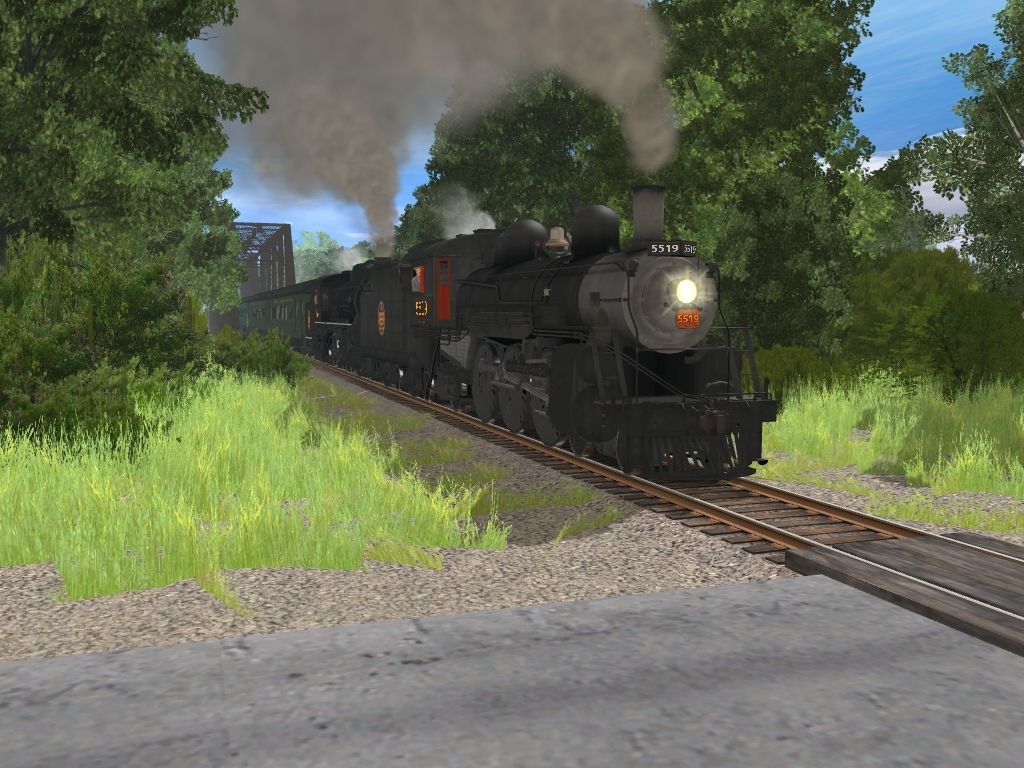 Tags: Trainz: A New Era, Adrianville, Doubleheader, CN K1d Engine, CN X10a Engine V1, CN K1d Tender V2, GL&O Combine Heavyweight, GL&O Coach Heavyweight, BM&R Coach Green, BM&R Coach Red, MILW 01 Baggage Golden Valley, DB&EV 03 Diner, CN 03 Steel Coach, GTW Coach Heavyweight