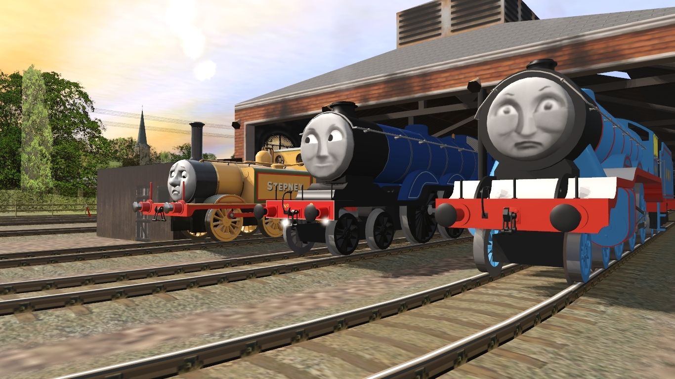 Tags: Trainz Railroad Simulator 2019, SI3D Exhibition Layout, Default, Crovan the Mean Engine, Alfred the Loaned Engine BR Blue, TTTE - Stepney, TTTE - Neville's Tender, TTTE - Neville (S5&9), Crovan's Tender, Alfred's Tender BR Blue, BR Freight CAR Brake Bauxite, BR Freight MCO Grey Loaded