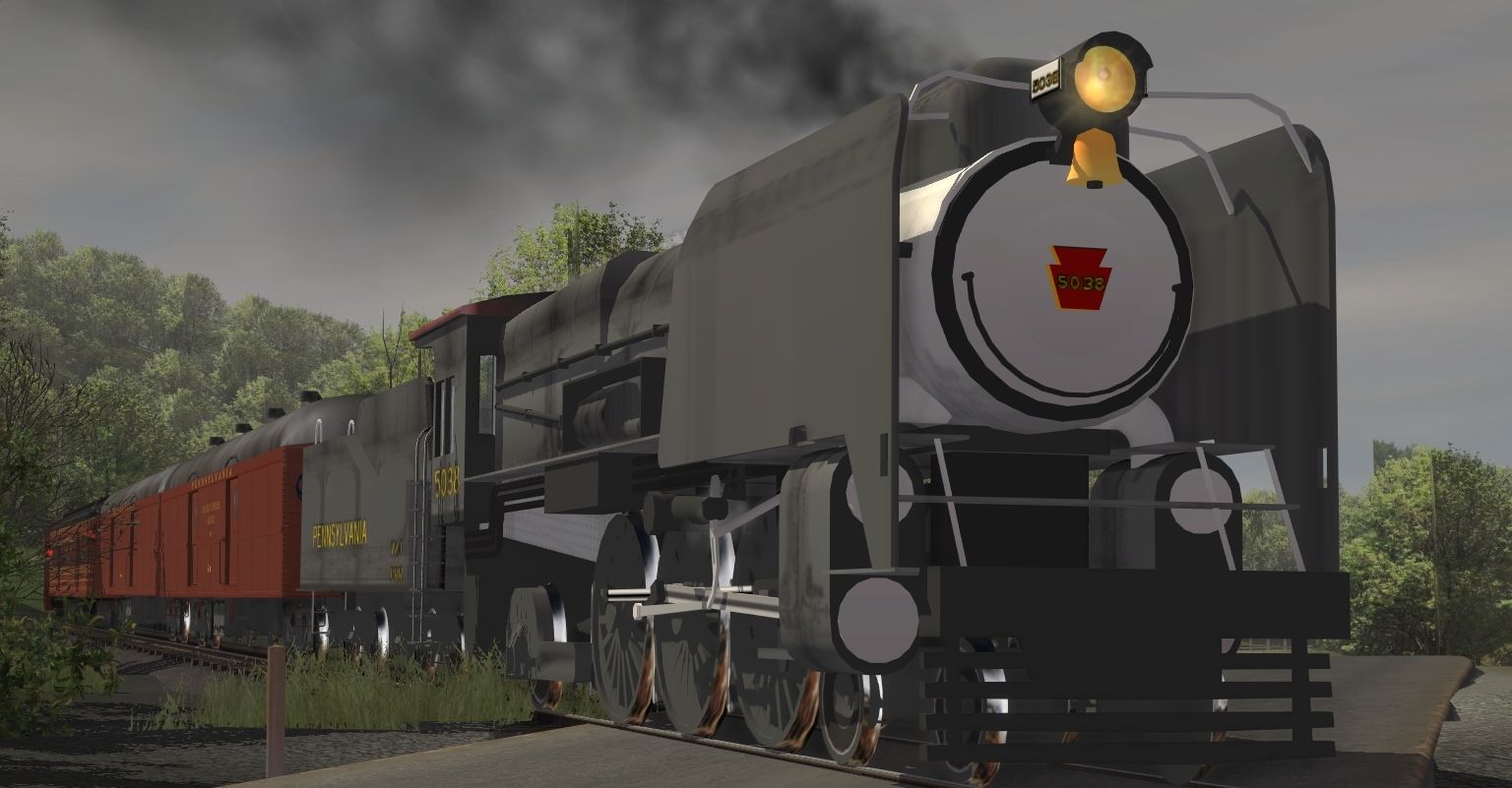 Tags: Trainz: A New Era, Coal Country, Flying Cam, PRR K4 5038, PRR K4 5038 Tender, PRR B60b Express, PRR B60b Baggage, PRR FOM B70 Baggage, PRR FOM PS18 Sleeper, PRR Pullman 10-1-2, PRR P85A Coach, PRR P70 Coach