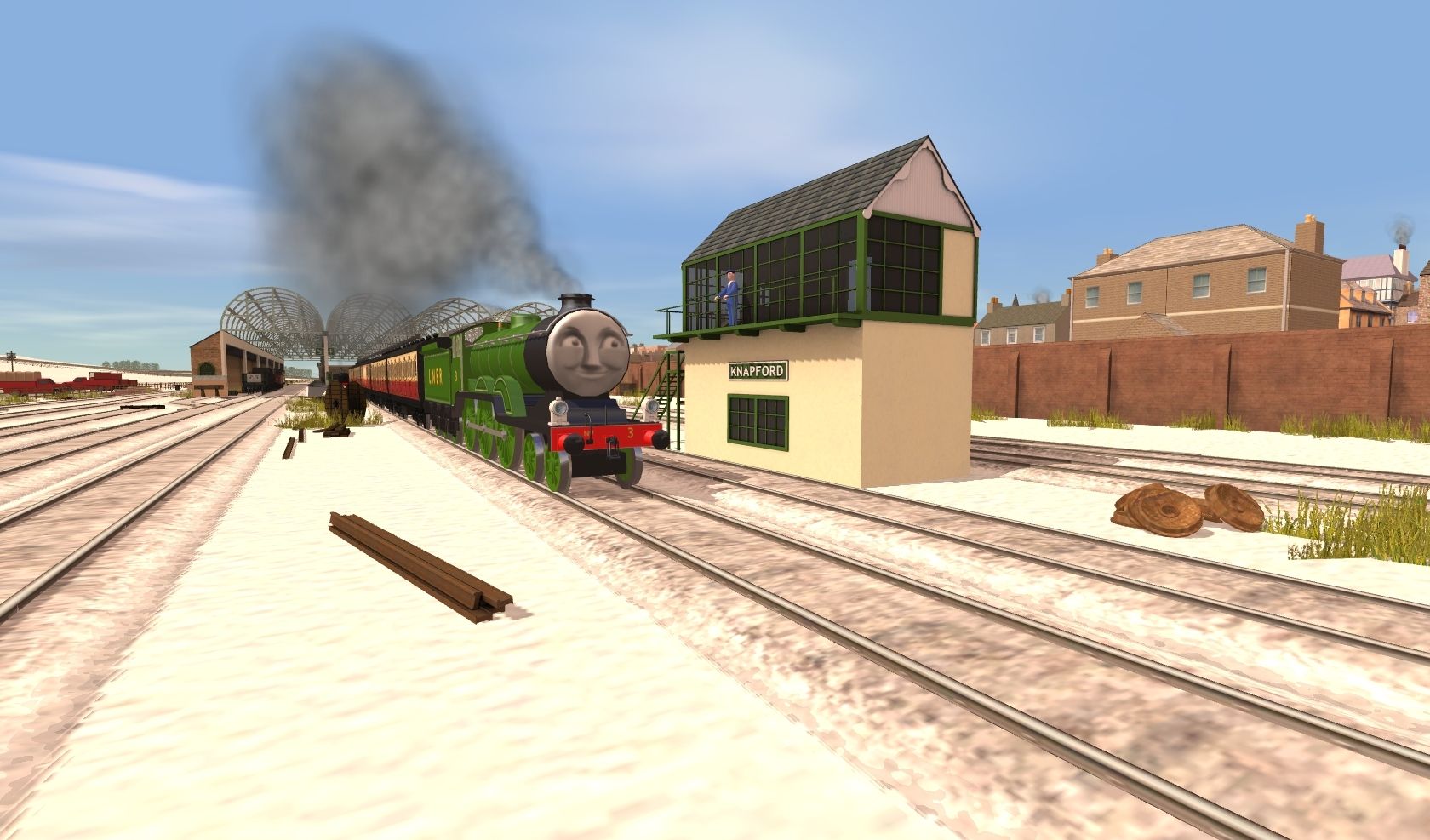 Tags: Trainz: A New Era, IoS - The Kellsthorpe Extension Winter, Alfred the Loaned Engine (2006 body), Alfred's Tender 2006, Engie's - TVS S6 Maunsell Composite Coach (TS12+), Engie's - TVS S8 Maunsell Buffet Coach (TS12+), Engie's - TVS S6 Maunsell Brake Coach (TS12+).