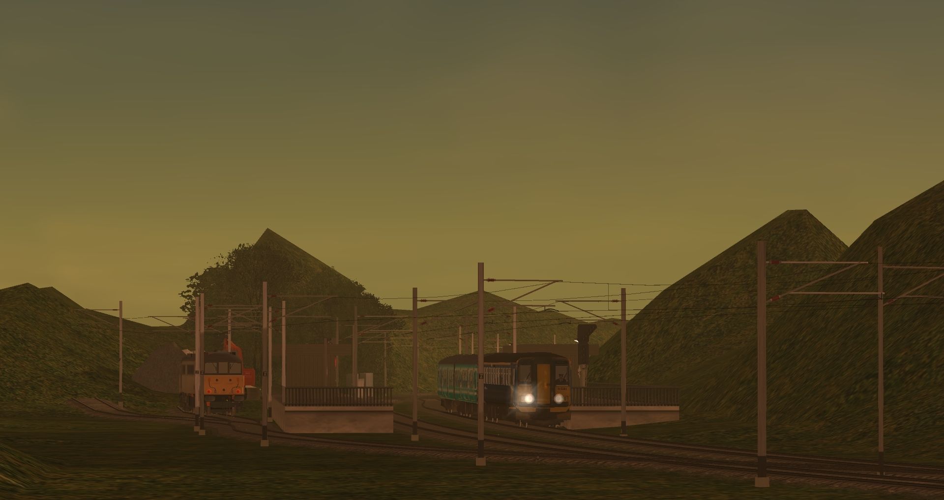 Tags: Trainz: A New Era, Flat grass and few buildings, BR Class 73 Two Tone Grey GBRF 73107 (Diesel), Class 08 (Toton No1), Class 153 Detailed First North Western, Class 150/2 Anglia, BR Class 86614 Freightliner 3 tone grey, Class 37 ex-BR large logo scrap