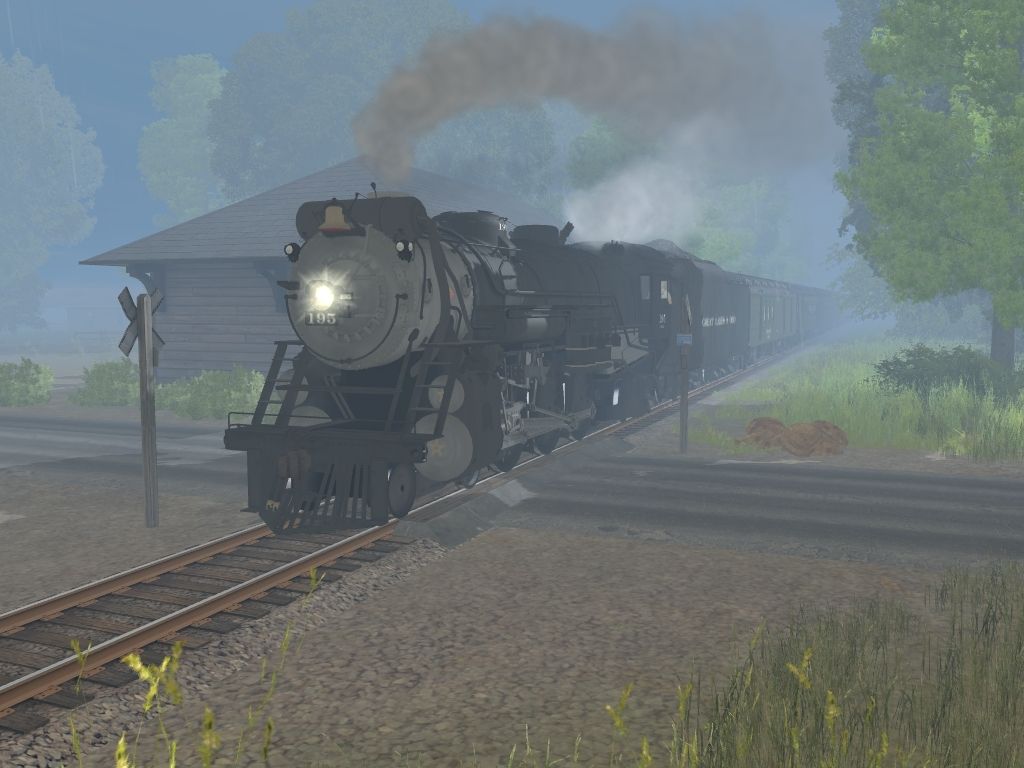 Tags: Trainz: A New Era, Adrianville, 195 Excursion Test, GL&O 195 Engine, DTI GP38-2, GL&O 195 Tender, MoW Steel Combine, GL&O Combine Heavyweight, GL&O Coach Heavyweight, CN Commuter Coach, CN 03 Steel Coach, BM&R Coach Red, BM&R Coach Green, MILW 01 Baggage Golden Valley