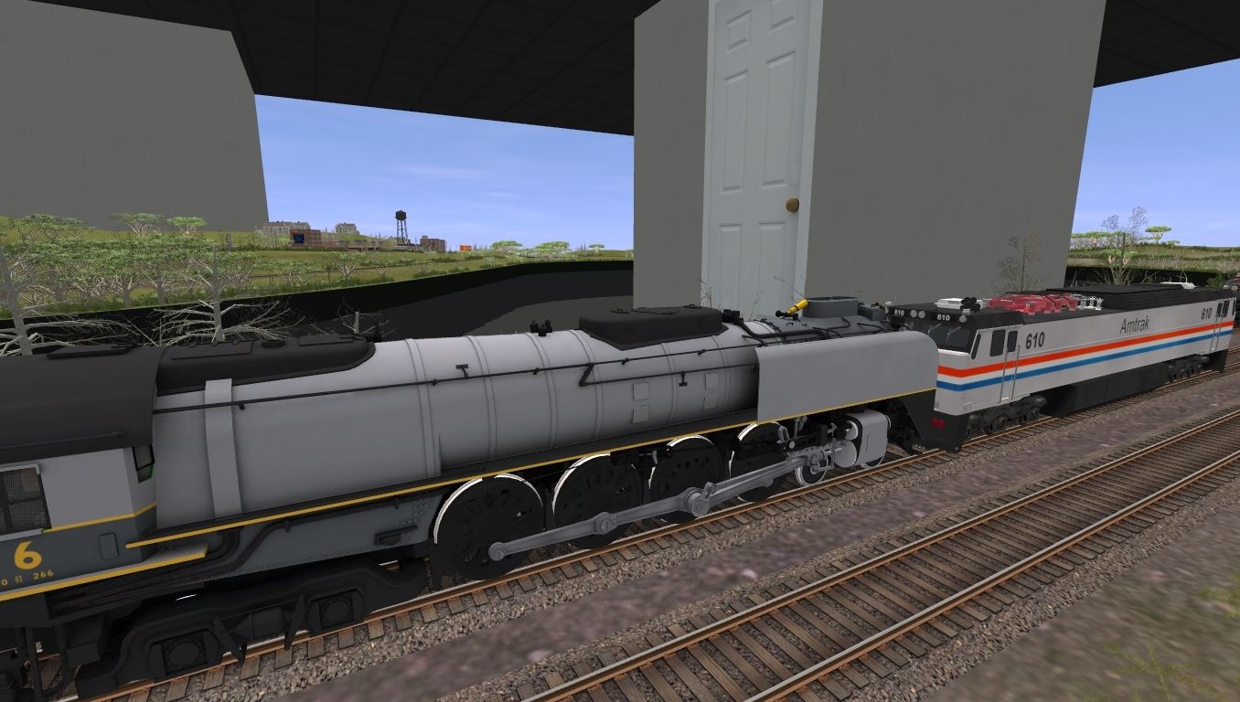 Tags: Trainz: A New Era, Brazemore Yard, UPRR FEF-3 836, Amtrak E60CP #610, B&M P4 Engine V3, Greenbrier Express Engine, UPRR FEF TTG-Y oil tender, B&M P4 Tender V3, Greenbrier Express Tender