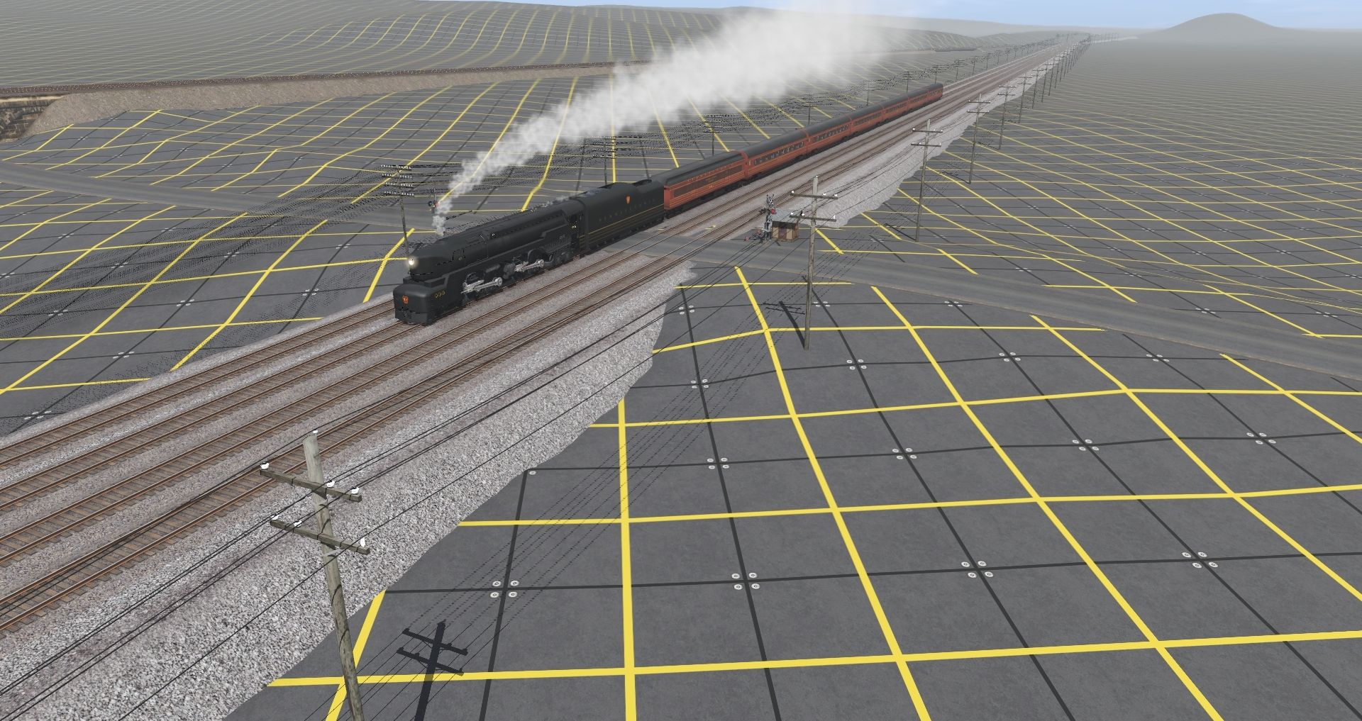 Tags: Trainz Railroad Simulator 2019, Matts Version Pittsburgh to Philadelphia 3, 245 crossing, PRR T1 1945, PRR T1 1945 Tender, PRR FOM B70 Baggage, PRR FOM PS18 Sleeper, PRR FOM POS21A Observation