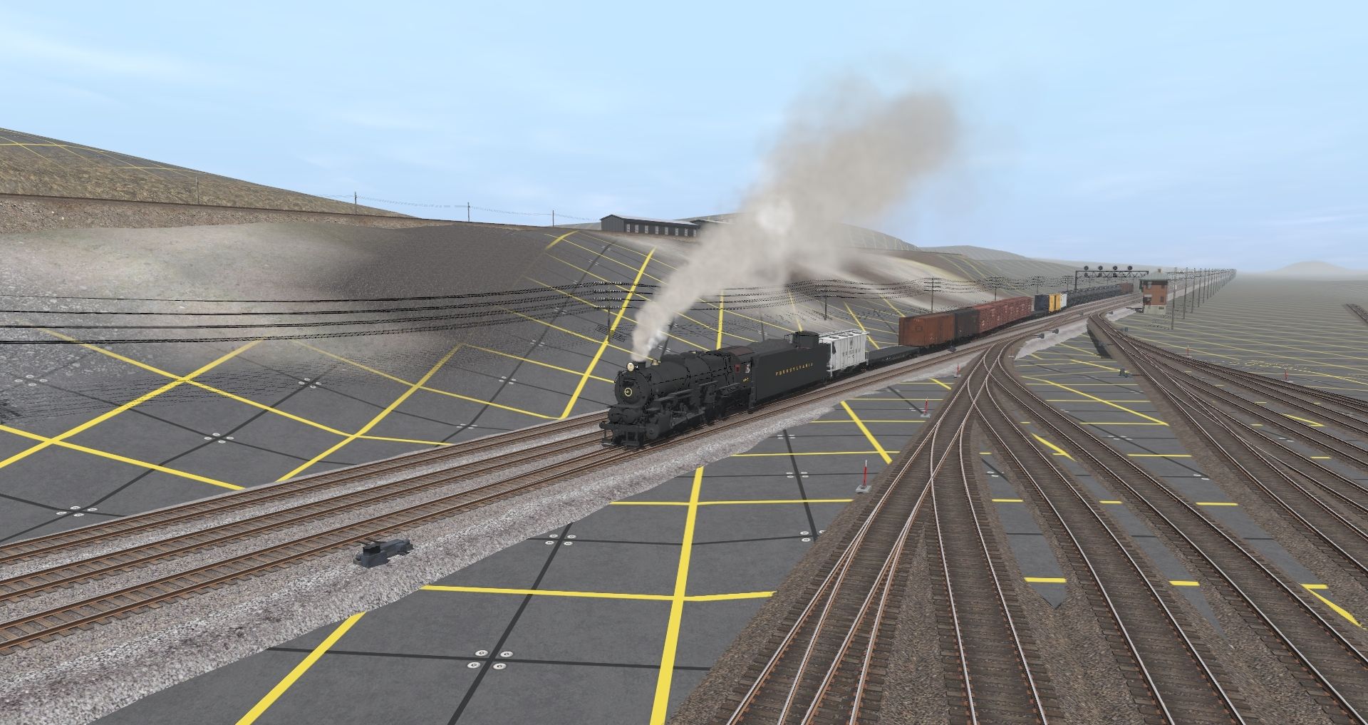 Tags: Trainz Railroad Simulator 2019, Matts Version Pittsburgh to Philadelphia 3, 245 crossing, PRR I1sa Engine Post-War, PRR I1sa Tender Coast to Coast Post-War, PRR LO 2003, 70ton AAR Flatcar C&O, 40ft Boxcar C&O, 40ft Stockcar C&O 95188 Ant, 40ft Stockcar C&O 95189 Ant, 40ft Stockcar C&O 95233 Ant, 40ft Stockcar C&O 95235 Ant, 40ft Boxcar NYC, PRR N5c Caboose 1