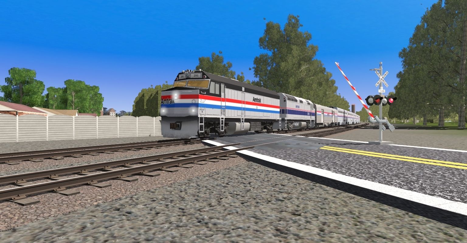 Tags: Trainz Railroad Simulator 2019, Fictional Scenic Railroad, Grand Train Show!, Amtrak F40PH Phase III #291, Amtrak F40PH 398 Phase IV, Amtrak Baggage, Superliner II Coach 34120