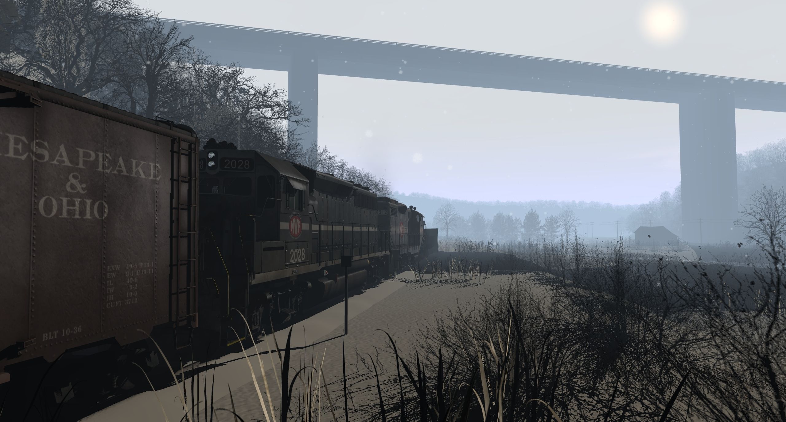 Tags: Trainz: A New Era, Monongahela & Western Pennsylvania, Snowfall Assist, MWPX GP40-2, MWPX GP18, 40ft Boxcar C&O, MWP Snow Plow, PPLX 100 Ton Hopper, MWPX 140 ton flat car