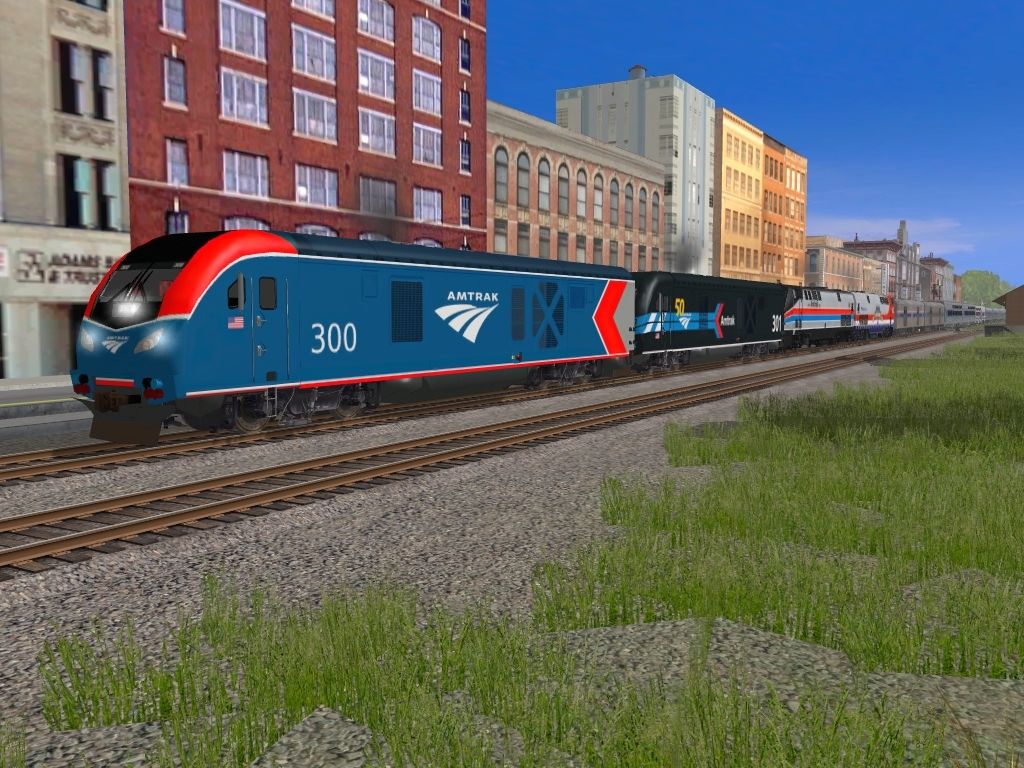 Tags: Trainz: A New Era, PRR Bradford Line, Amtrak ALC-42 Charger Ph VI #300, Amtrak ALC-42 Charger Day1 #301, AMTK P42DC Heritage phII, AMTK P42DC Veterans, Amtrak Baggage Car 1215 phase IV, Amtrak Baggage Car 1225 (Heavy Weathering), Amtrak Viewliner Sleeper Phase IVb, Amtrak Viewliner Diner Ph III, AMTK Amfleet II, AMTK Amfleet Cafe PhIVb, Amtrak Baggage Car 1255