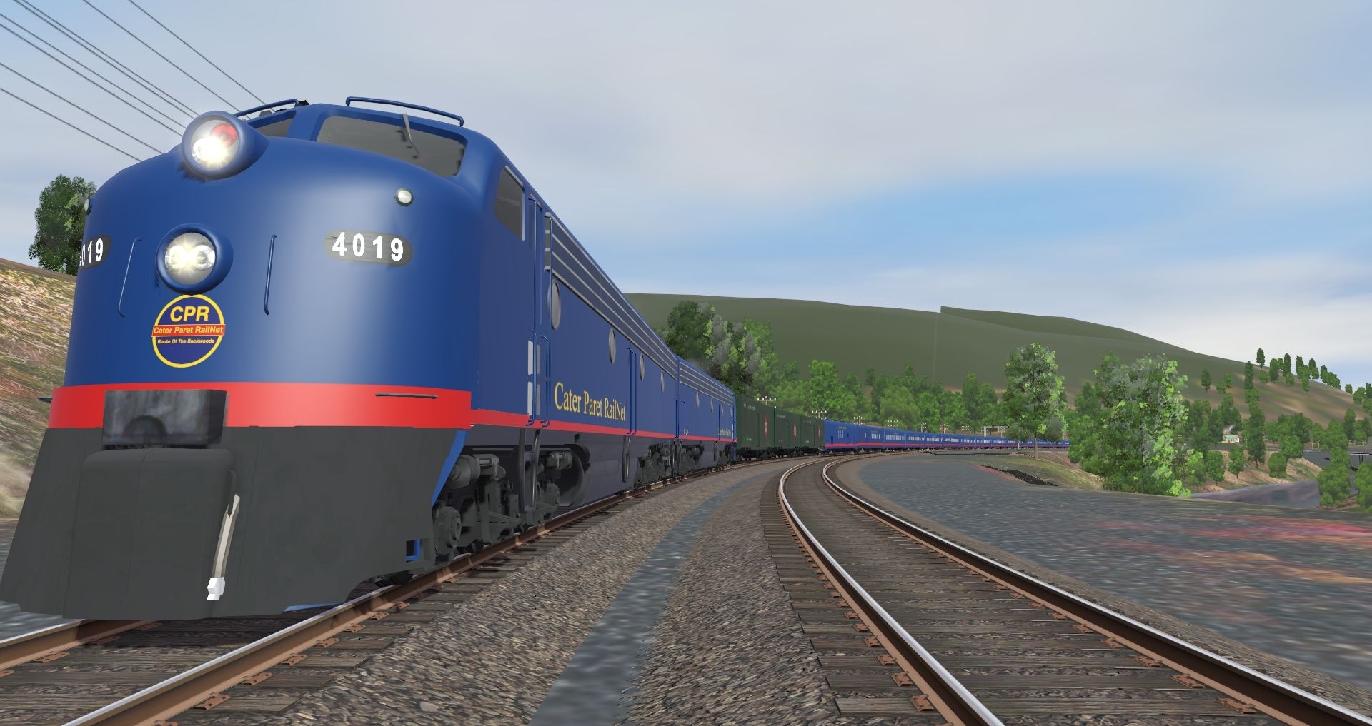 Tags: Trainz Railroad Simulator 2019, Cumberland to Connellsville, Cumberland to Connellsville - Default, CPR EMD E8A Early, REA (Ex-Troop) Express Boxcar #8249, REA (Ex-Troop) Express Boxcar #8255, REA (Ex-Troop) Express Boxcar #8253, CPR Lightweight Baggage RPO, CPR Lightweight Baggage-Dorm CONO, CPR Lightweight Lunch Counter/Lounge, CPR Lightweight Coach 56 Seat, CPR Lightweight Dining Car CONO, CPR Lightweight Coach 48 Seat, CPR Lightweight Observation CONO