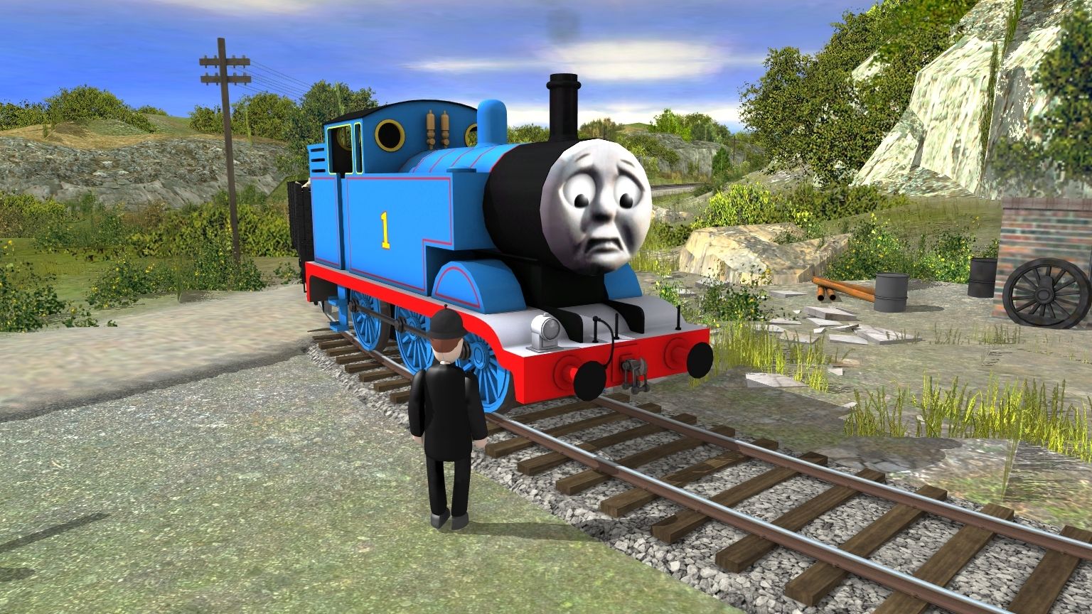 Tags: Trainz: A New Era, TVS Ffarquhar to Elsbridge Extension, Thomas in Trouble (Thumbnail), Thomas The Tank Engine 2010 (Snow), Annie (AJS 09), Clarabel (AJS 09), Engie's - TVS S1 7 Plank Wagon (TS12+)