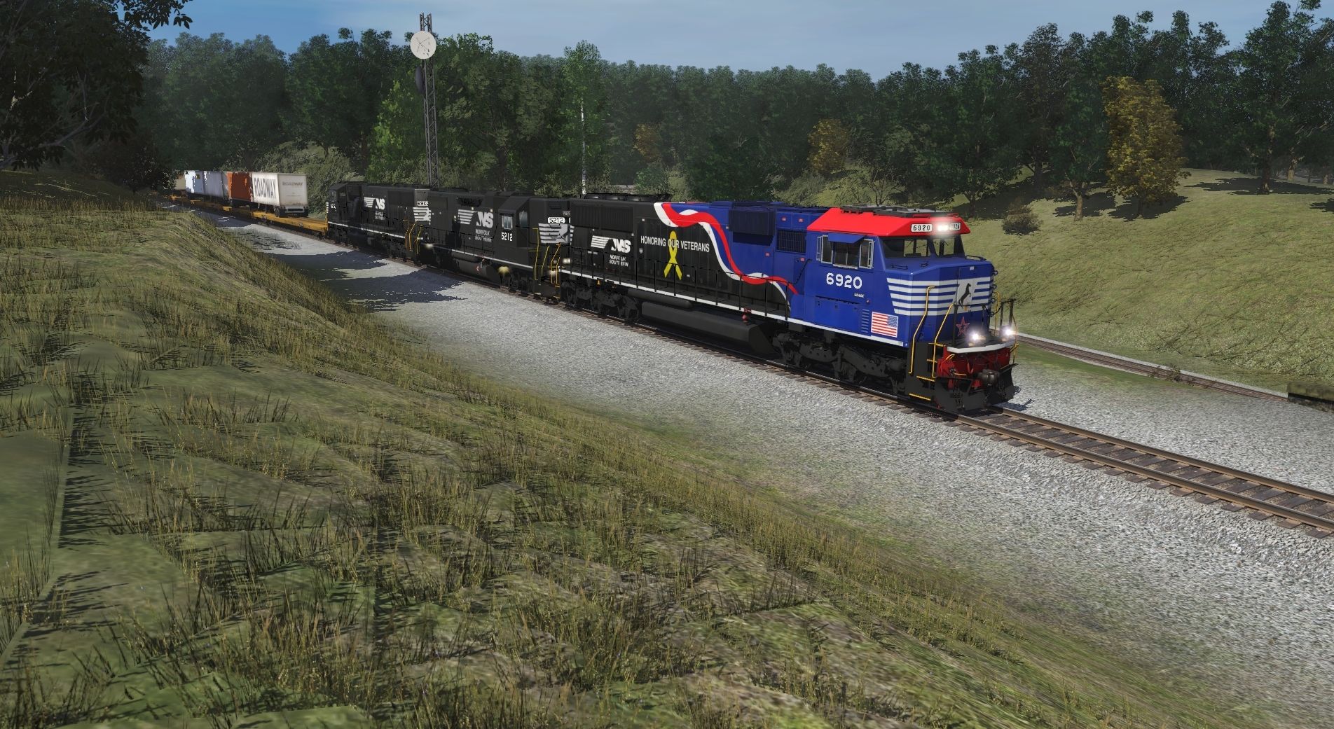 Tags: Trainz Railroad Simulator 2019, NS Horseshoe Curve Modified w Portals #1, NS Horseshoe Curve Modified w Portals - Default, NS SD60E Veterans, NS GP38-2, NS SD60E, TTX 89ft TOFC Flatcar, Spinecar D Unit Dirty, Spinecar C Unit Dirty, Spinecar A Unit Dirty, Spinecar B Unit Dirty, Spinecar E Unit Dirty, PRR Caboose NE-5 477375 fictional, PRR 100 Ton Hopper
