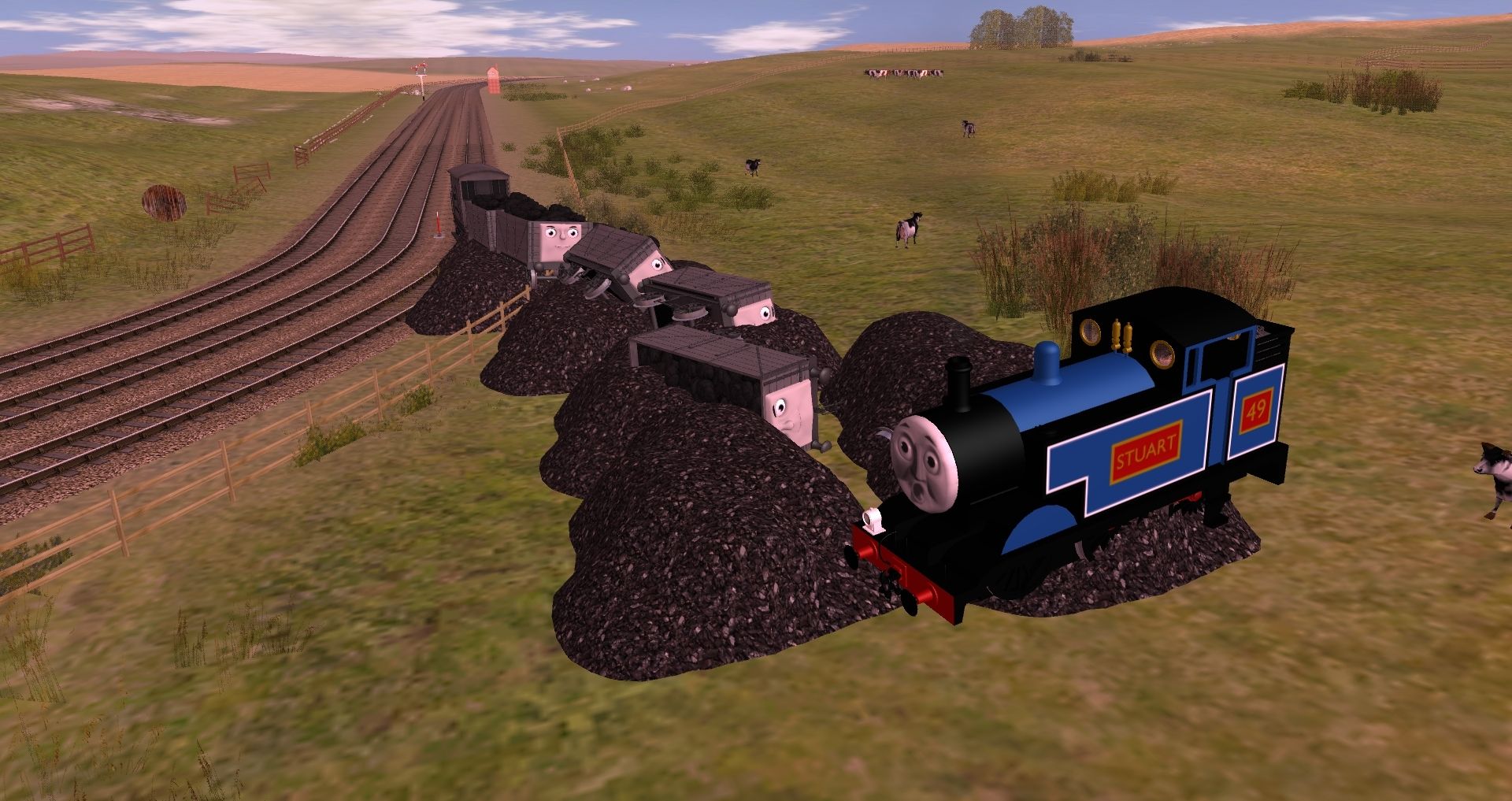 Tags: Trainz: A New Era, Crash, Crash - Default, Stuart the 'Junior' Engine, Troublesome Truck - Grey (Coal), Sodor Brake Van Type 1 - Grey