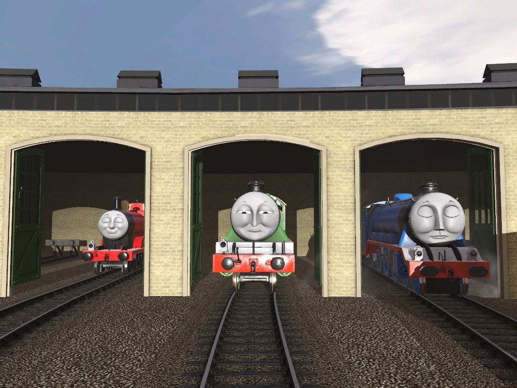 Tags: Trainz Railroad Simulator 2019, ZA - IoSCRV2 - PGB (Part II) - Rumble Bridge, SudrianRails - Henry the Green Engine (New Shape), TTTE - Gordon, TTTE - James the red engine (Reskin Friendly), SudrianRails - Henry's Tender, S3 - Thomas The Tank Engine, TVS Lily (W&S Livery), TTTE - Gordon's Tender, TTTE - James's Tender (Reskin Friendly), Sodor Brake Van Type 1 - Grey, TTTE - 7 plank, Troublesome Box Van 9 (Gray)