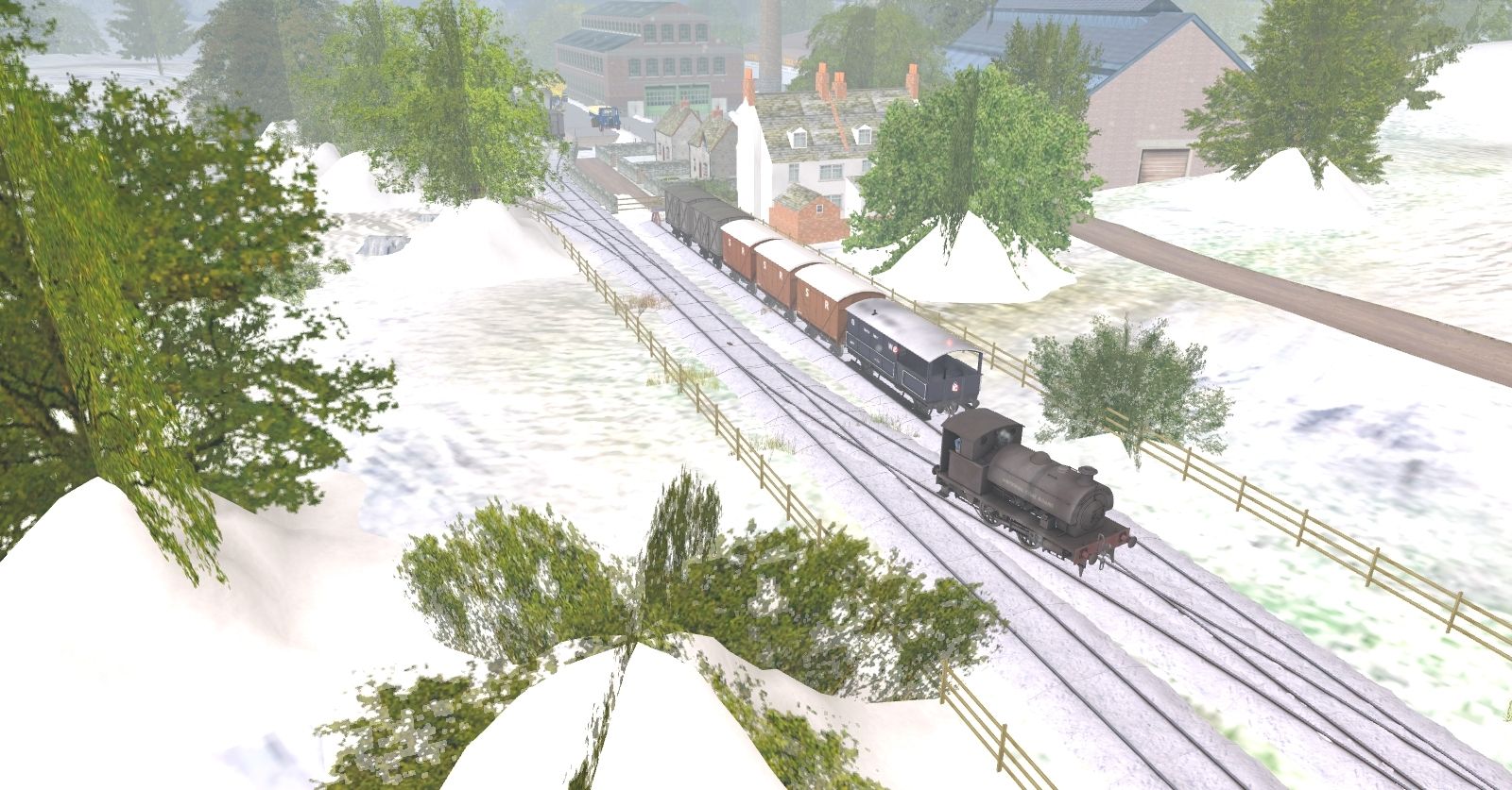 Tags: Trainz: A New Era, Factory Diorama - Winter [ES3D], RS&H 0-4-0ST - National Coal Board, BR Class 04 Black early cab2, SR Maunsell Q Class (BR Black No. 30530), Queen Mary SR brake van, GWR 20T Toad Brake Van Weathered, SR dual vented 12 ton 3 van, LMS 12 Ton Goods Van MT 663, BR 20T Brake Van Bauxite, BR Conflat A Diag 1/061, BR Covered Bogey Wagon, BR 16T Grey Bauxite