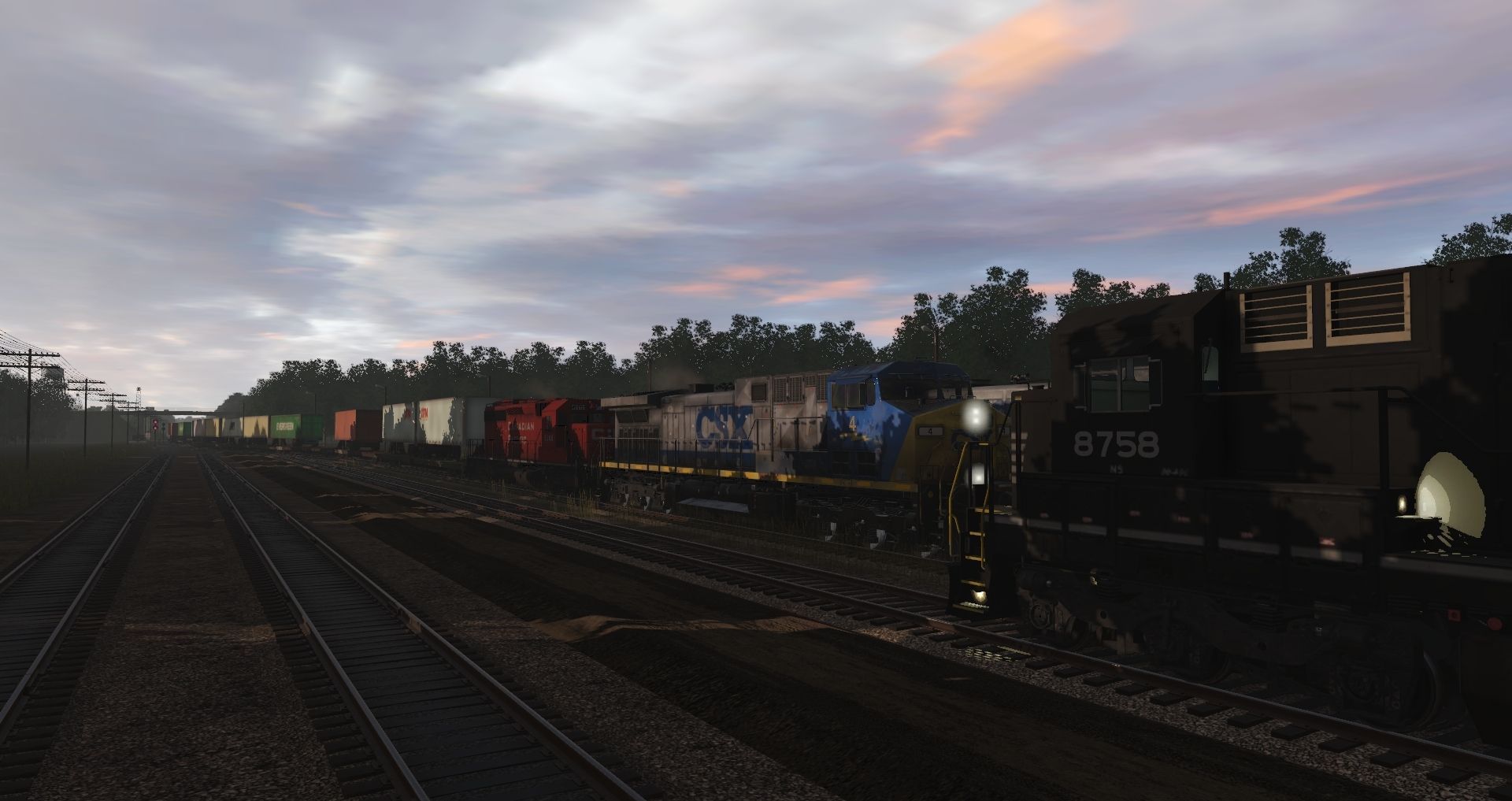 Tags: Trainz Railroad Simulator 2019, Terminal RR, Terminal RR - Default, NS C40-8, HLCX SD40-2 6206, CSX B40-8 YN2 (ex NYSW) Early, CSX AC4400CW YN2 4-9, CSX B40-8 YN3B (ex NYSW), CP Rail SD40-2 5865-5879 Block Letter Logo, DODX Caboose, JRPX 20800 gal tank car, RBOX 50ft Boxcar FMC, JRPX CB 20800 gal tank car, FEC Green 89ft TOFC Flatcar