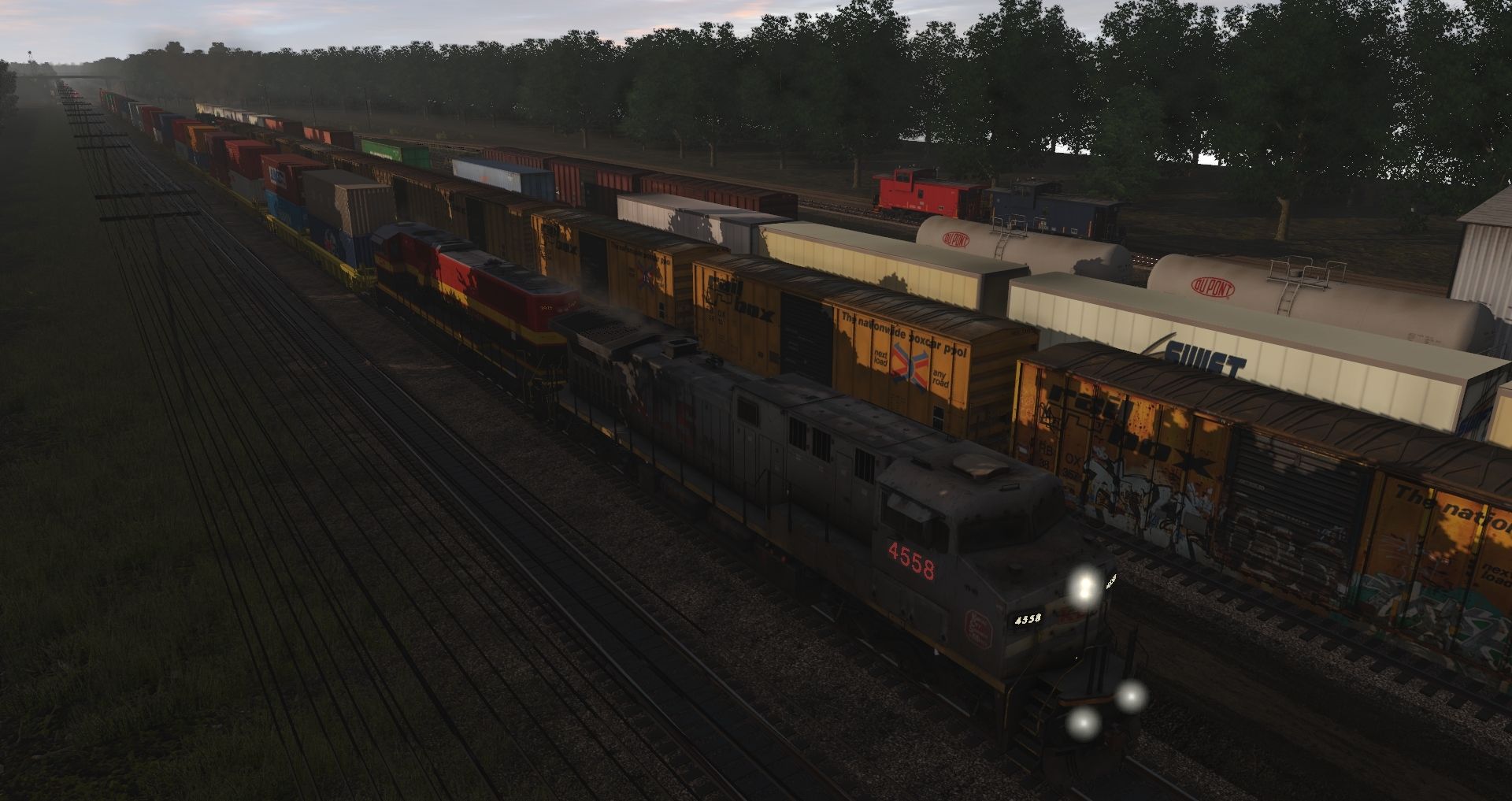 Tags: Trainz Railroad Simulator 2019, Terminal RR, Terminal RR - Default, KCSM AC4400CW 4550-4574 TS19 4, KCS Belle SD70MAC, CP Rail SD40-2 5865-5879 Block Letter Logo, CSX AC4400CW YN2 4-9, HLCX SD40-2 6206, NS C40-8, RBOX2 50ft Boxcar FMC, FEC Green 89ft TOFC Flatcar, DOWX 20800 gal tank car, FEC Brown 89ft TOFC Flatcar, RI 50' Plug Door Boxcar #516655