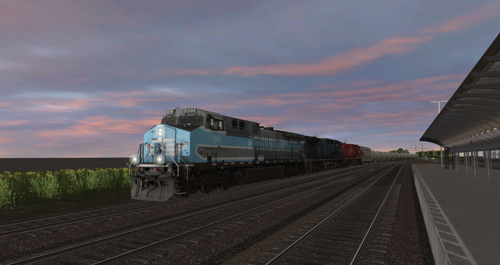 Tags: Trainz Railroad Simulator 2019, CN Great Lakes Region 2020 - RT Mod., CN Great Lakes Region 2020 - RT Mod. - Default, CMQ AC4400CW 1002 TS19, CEFX AC4400CW 1001-1025 TS19 4, CP AC4400CW 9500-9582 TS19 1, UNPX ACF Centerflow 4 Bay long hatch, JRPX 20800 gal tank car, TILX ACF Centerflow 4 Bay long hatch