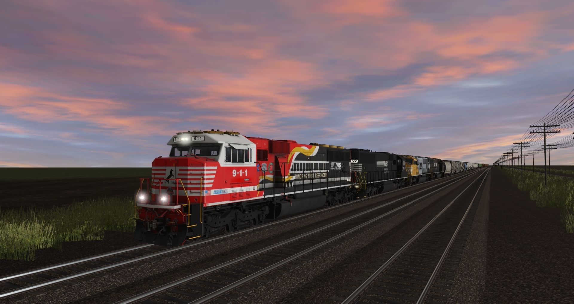 Tags: Trainz Railroad Simulator 2019, CN Great Lakes Region 2020 - RT Mod., CN Great Lakes Region 2020 - RT Mod. - Default, NS SD60E First Responders, NS SD60, NS SD70ACC Yellow Bonnet, NS SD70ACC, MWGX (dirty) Cylindrical Hopper, HB Cylindrical Hopper, UP Trinity 3 Bay Hopper, 52ft Gondola HBRX 1, BN Trinity 3 Bay Hopper, JR 52ft Bulkhead HMGX, Bethgon CSXT