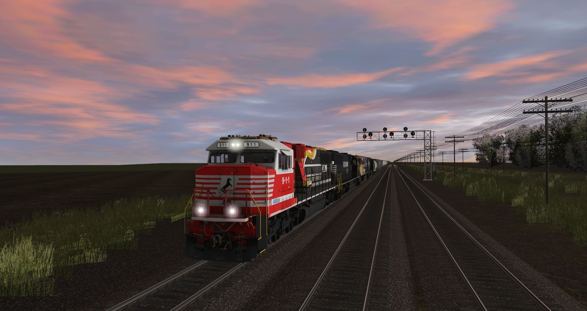 Tags: Trainz Railroad Simulator 2019, CN Great Lakes Region 2020 - RT Mod., CN Great Lakes Region 2020 - RT Mod. - Default, NS SD60E First Responders, NS SD60, NS SD70ACC Yellow Bonnet, NS SD70ACC, MWGX (dirty) Cylindrical Hopper, HB Cylindrical Hopper, UP Trinity 3 Bay Hopper, 52ft Gondola HBRX 1, BN Trinity 3 Bay Hopper, JR 52ft Bulkhead HMGX, Bethgon CSXT