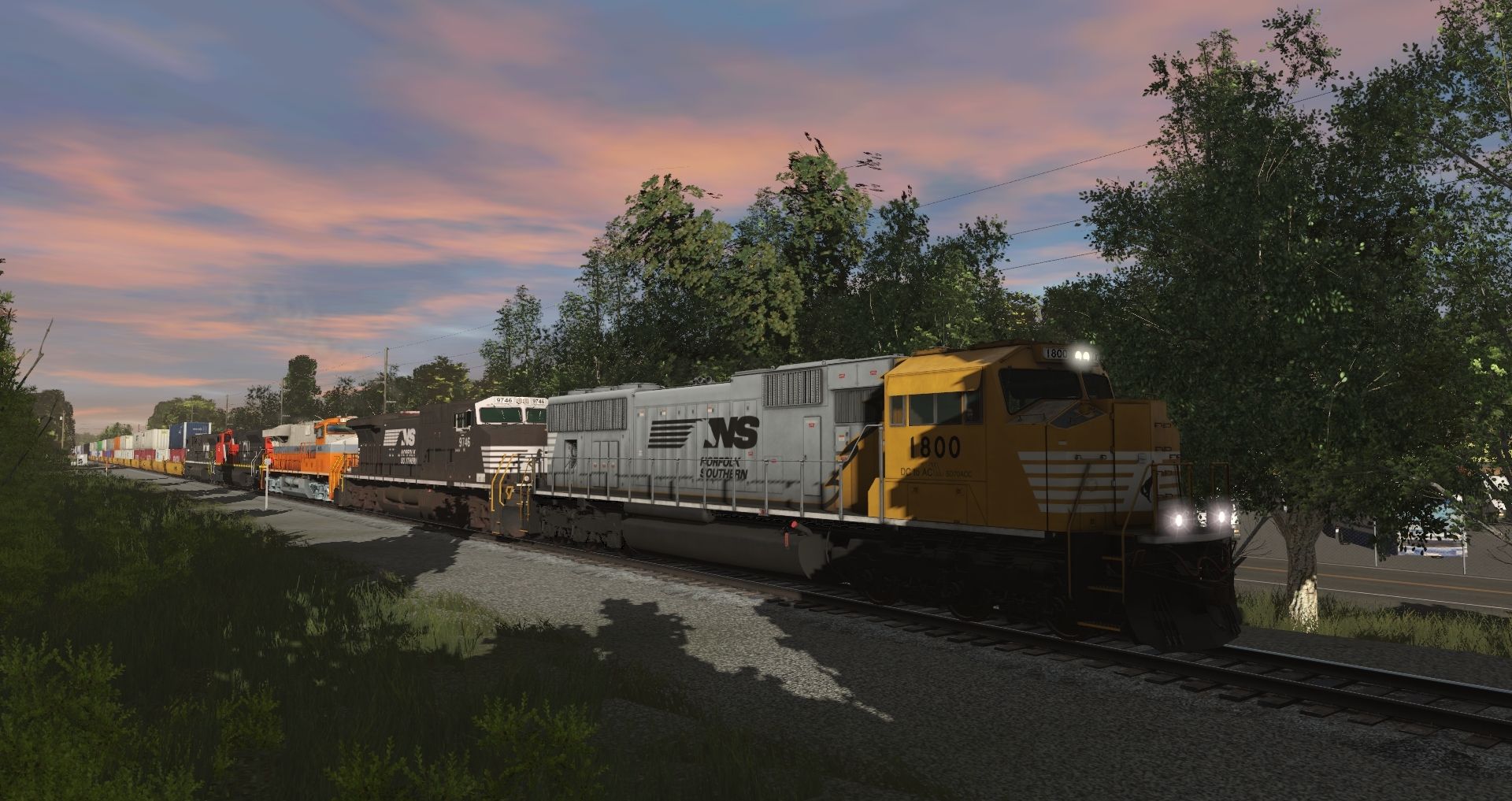 Tags: Trainz Railroad Simulator 2019, Norfolk Southern Birmingham East End Mod., Intermodal Travels, NS SD70ACC Yellow Bonnet, NS Dash9 #9746, NS ES44AC INT Heritage 8105, EMD SD70M-2 Canadian National, EMD SD70ACe Norfolk Southern, TTX 53 Maxi-IV B, TTX 53 Maxi-IV A, TTX 53 Maxi-IV C, 50ft Boxcar UB, 50ft Boxcar UB Weathered, 2bay_h49 41' Coverd Hopper USLX v3