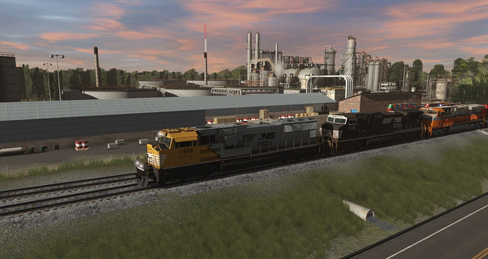 Tags: Trainz Railroad Simulator 2019, Norfolk Southern Birmingham East End Mod., Intermodal Travels, NS SD70ACC Yellow Bonnet, NS Dash9 #9746, NS ES44AC INT Heritage 8105, EMD SD70M-2 Canadian National, EMD SD70ACe Norfolk Southern, NS GP38-2, NS GP38-2 LH, 2bay_h49 41' Coverd Hopper USLX v1, 2bay_h49 41' Coverd Hopper USLX v2, TTX 53 Maxi-IV B, 2bay_h49 41' Coverd Hopper USLX v3
