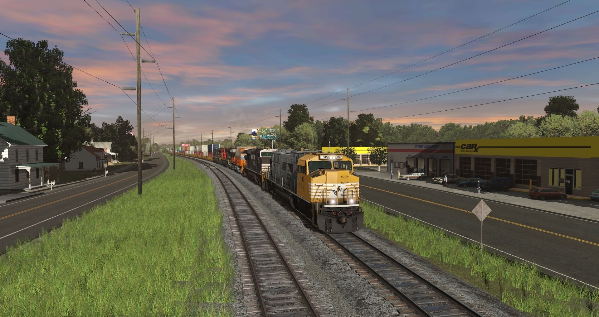 Tags: Trainz Railroad Simulator 2019, Norfolk Southern Birmingham East End Mod., Intermodal Travels, NS SD70ACC Yellow Bonnet, NS Dash9 #9746, NS ES44AC INT Heritage 8105, EMD SD70M-2 Canadian National, EMD SD70ACe Norfolk Southern, NS GP38-2, NS GP38-2 LH, TTX 53 Maxi-IV B, TTX 53 Maxi-IV A, TTX 53 Maxi-IV C, 2bay_h49 41' Coverd Hopper USLX v1