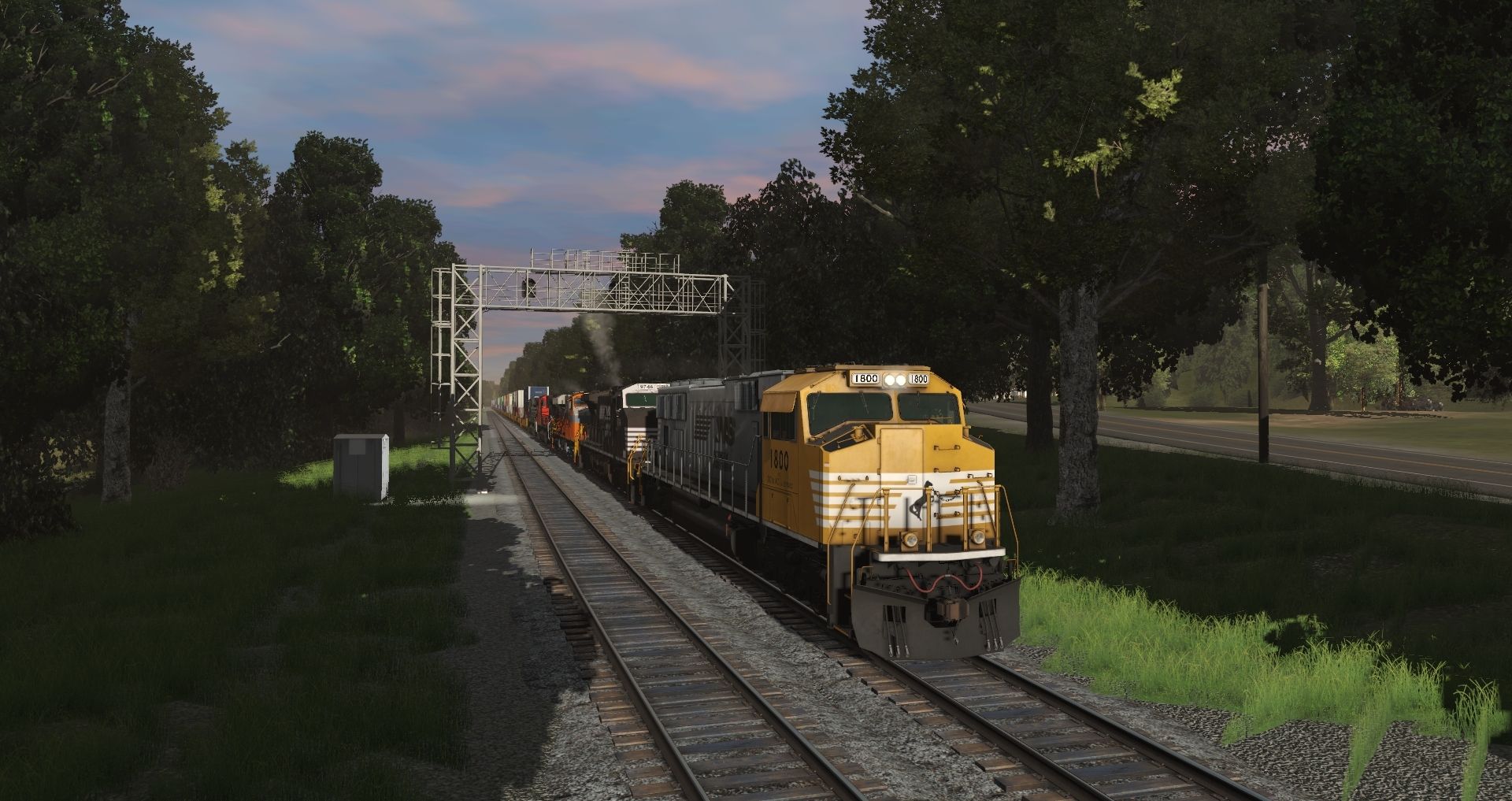 Tags: Trainz Railroad Simulator 2019, Norfolk Southern Birmingham East End Mod., Intermodal Travels, NS SD70ACC Yellow Bonnet, NS Dash9 #9746, NS ES44AC INT Heritage 8105, EMD SD70M-2 Canadian National, EMD SD70ACe Norfolk Southern, TTX 53 Maxi-IV B, TTX 53 Maxi-IV A, TTX 53 Maxi-IV C, NP 50' RBL, BN 50' RBL, Boxcar Evans 53' DPD GTW Weathered