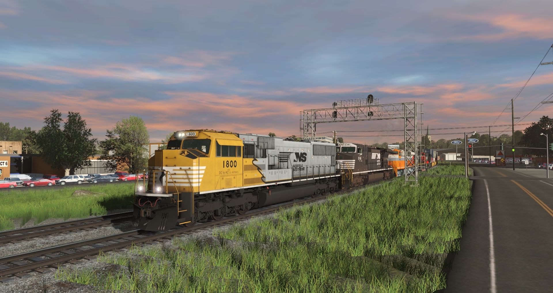 Tags: Trainz Railroad Simulator 2019, Norfolk Southern Birmingham East End Mod., Intermodal Travels, NS SD70ACC Yellow Bonnet, NS Dash9 #9746, NS ES44AC INT Heritage 8105, EMD SD70M-2 Canadian National, EMD SD70ACe Norfolk Southern, TTX 53 Maxi-IV B, TTX 53 Maxi-IV A, TTX 53 Maxi-IV C, 50ft ACF Hopper ACFX 27861, 57ft Tanker DBUX 301132, Bulkhead Flatcar UP 62 ft