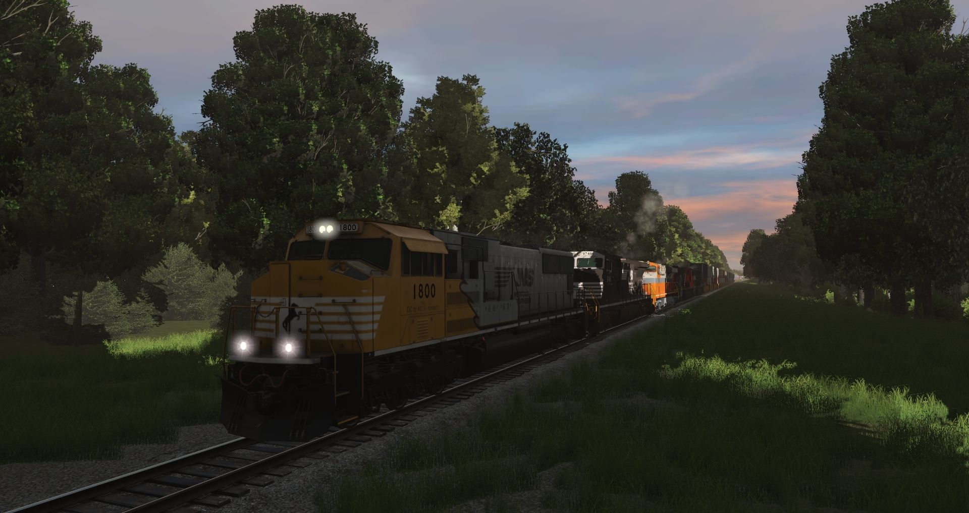 Tags: Trainz Railroad Simulator 2019, Norfolk Southern Birmingham East End Mod., Intermodal Travels, NS SD70ACC Yellow Bonnet, NS Dash9 #9746, NS ES44AC INT Heritage 8105, EMD SD70M-2 Canadian National, EMD SD70ACe Norfolk Southern, TTX 53 Maxi-IV B, TTX 53 Maxi-IV A, TTX 53 Maxi-IV C