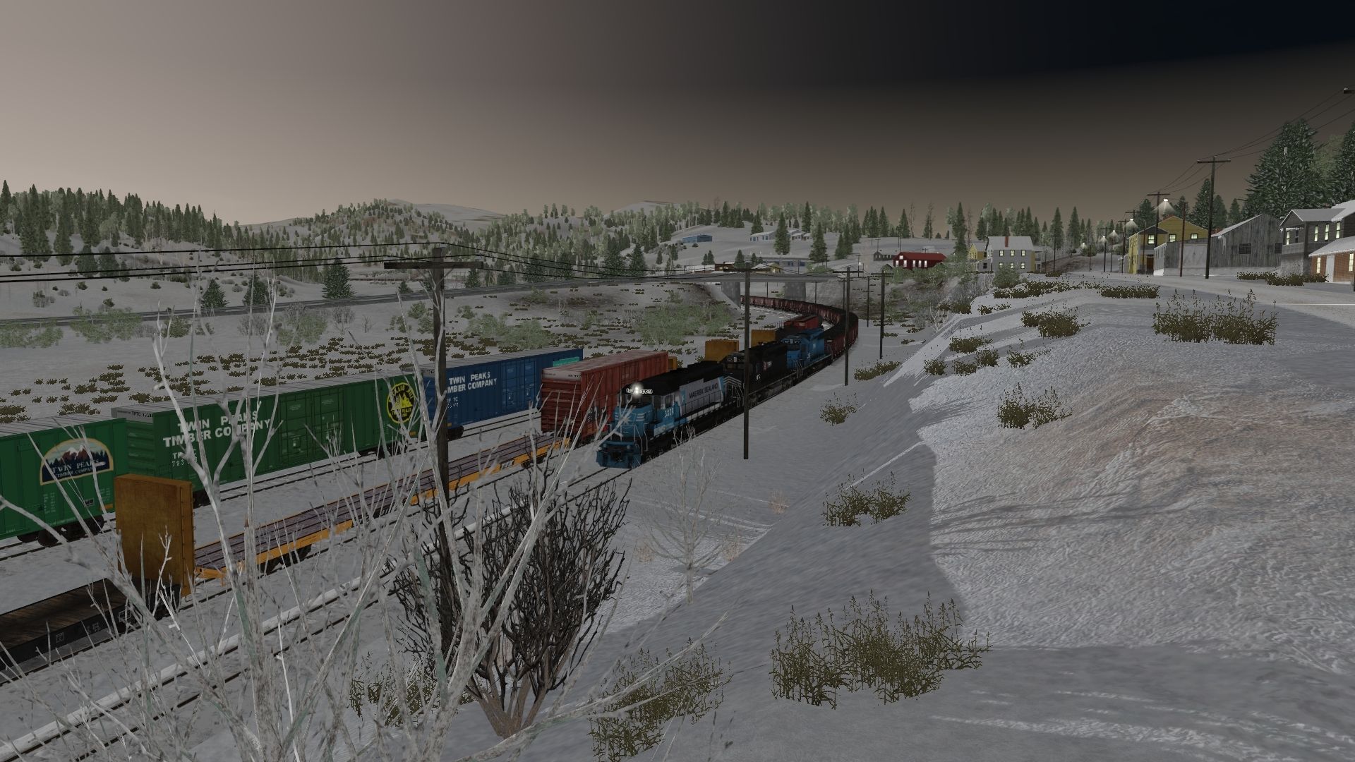 Tags: Trainz Railroad Simulator 2022, West from Denver - Moffat Route, 02 Winter Park Express - Eastbound (Evening) - 18:56 27/02/2022 - 03:17, NS Maersk SD40-2 2a1, TRR SD40-2, TRR SD40-2 patched, EMD SD70ACe BNSF H3, UP SD40-2, UP SD70M Flag, Southern Pacific Dash 9 ARN, NGCX Trinity 3 Bay Hopper, TPTC Boxcar HiCube 60ft TWIN PEAKS 3, TPTC Boxcar HiCube 60ft TWIN PEAKS 1, TPTC Boxcar HiCube 60ft TWIN PEAKS 2A
