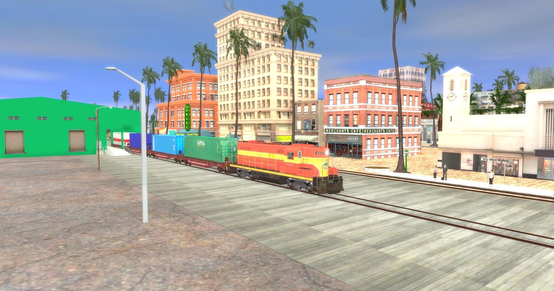 Tags: Trainz: A New Era, Florida East Coast Railway, GP9 Florida East Coast 653, Flatcar50ft Union Pacific hw#