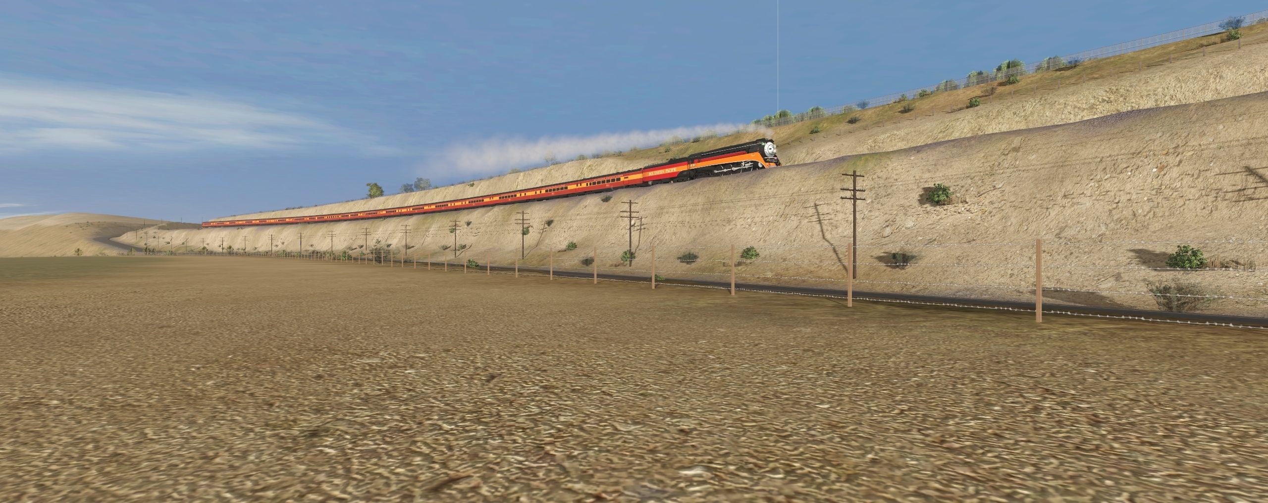 Tags: Trainz Railroad Simulator 2019, Mojave Sub Division, SP GS-4 Engine Daylight, SP GS-4 Tender Daylight Postwar, SP 1937 Coast Daylight Baggage-Chair Car, SP 1937 Coast Daylight Articulated Chair Car Mens, SP 1937 Coast Daylight Articulated Chair Car Womens, SP 1937 Coast Daylight Chair Car, SP 1937 Coast Daylight Triple Articulated Coffee Shop, SP 1937 Coast Daylight Triple Articulated Kitchen Car, SP 1937 Coast Daylight Parlor Observation Car