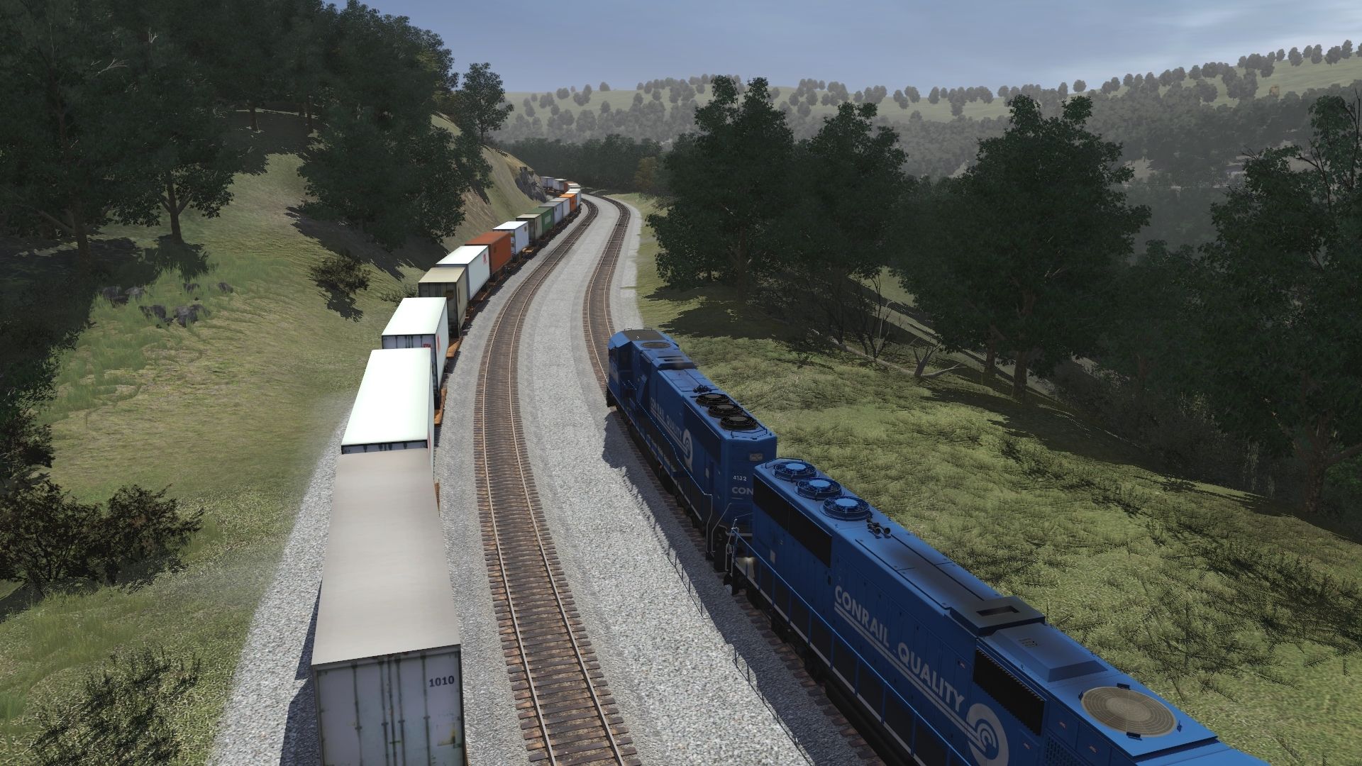 Tags: Trainz Railroad Simulator 2019, NS Horseshoe Curve Modified w Portals 3/1/22, NS Horseshoe Curve Modified w Portals 3/1/22 - Default, NS SD60E, CR SD60M, CR SD70MAC, Spinecar A Unit Dirty, Spinecar C Unit Dirty, Spinecar E Unit Dirty, Spinecar B Unit Dirty, Spinecar D Unit Dirty, TTX 89ft TOFC Flatcar, NS Caboose 555555