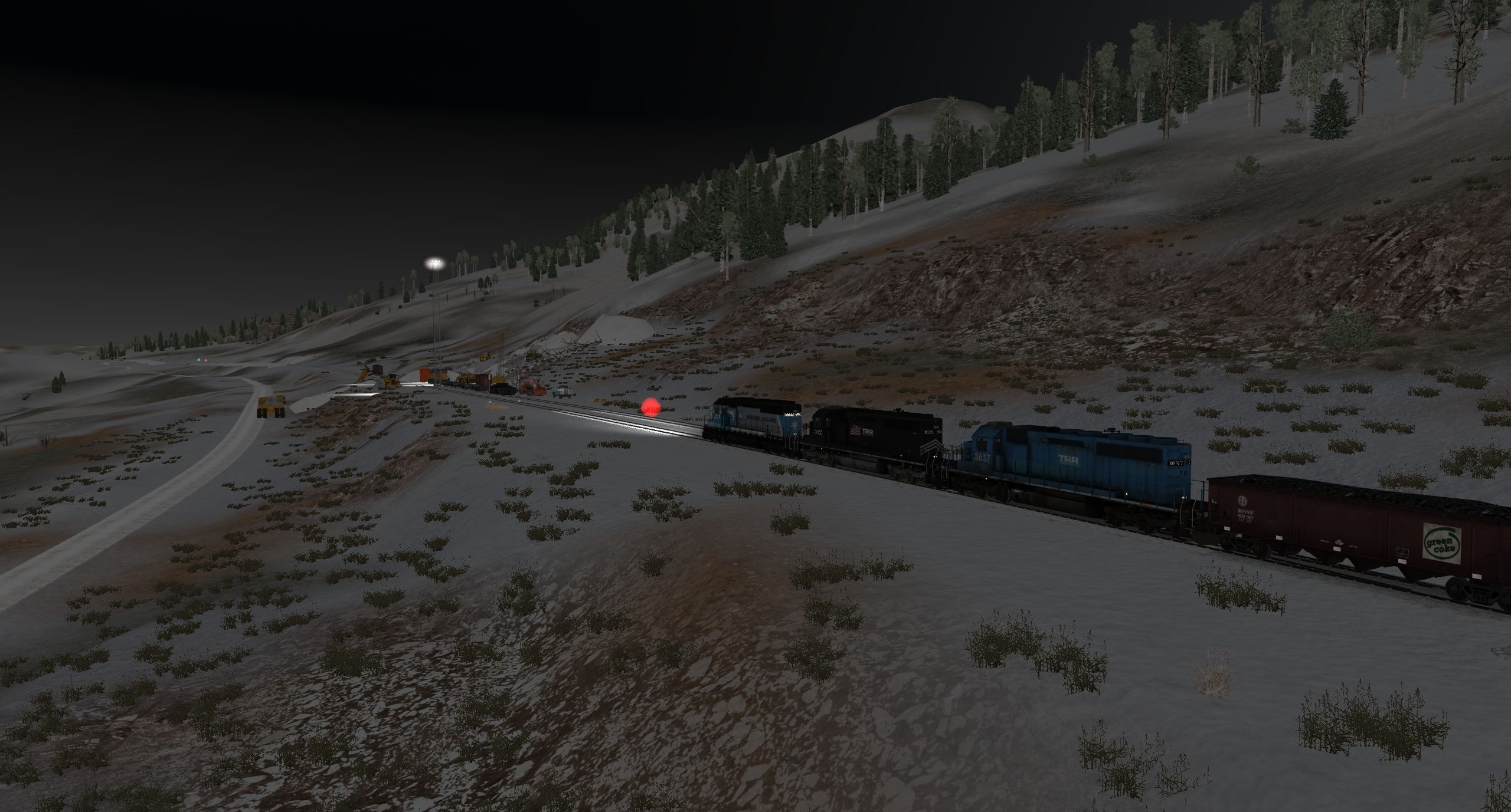 Tags: Trainz Railroad Simulator 2022, West from Denver - Moffat Route, 02 Winter Park Express - Eastbound (Evening) - 18:56 27/02/2022 - 03:17, TRR SD40-2 patched, TRR SD40-2, NS Maersk SD40-2 2a1, EMD SD40T-2 UP #2944, HI BNSF green coke hopper (coal), Crane Flat No Cab or Boom DES, Union Pacific MOW Tool car, Flatcar Depressed Center 55 ft UP DES, Jordon Spreader SP, 50ft up flatcar