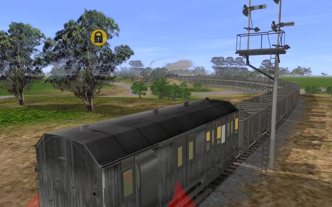 Tags: Trainz: A New Era, New RouteTaree- Brisbane Coast. / Maitland .Kempsey Stn, Default No.1., NSWGR D53 standard goods, NSWGR c32, NSWGR D55 standard goods - black, NSWGR D53 standard goods - black, NSWGR SHG Guards Van - BLack, NSWGR U 4-wheel open wagon auto-couplers dirty, NSWGR K wagon, NSWGR MLE Flat Wagon, NSWGR S wagon, NSWGR Wampo Tender RL TS12 SP1 HF4, NSWGR D50 class tender