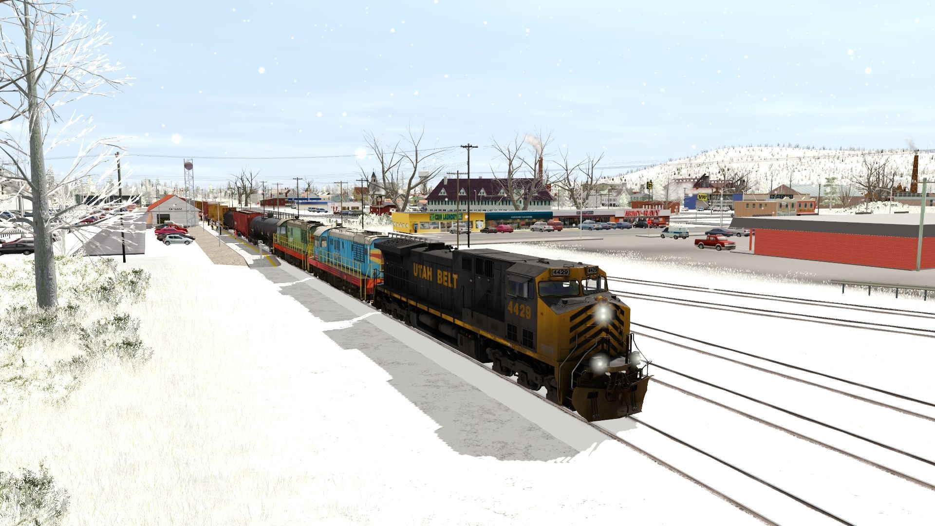 Tags: Trainz Railroad Simulator 2022, Centrella Sub Division - TRS19, Default - 18:32 04/03/2022 - 18:16, Utah Belt AC4400CW 4400-4450 TS19, CHME3-5763, CHME3-3172, TILX 33585 Gal Tank Car weathered 2, VFGX Trinity 3 Bay Hopper, TankTrain B, JR 52ft Bulkhead HMGX, JR 50ft Boxcar AOK #2, 89ft Flatcar ITTX #911522, NGCX Trinity 3 Bay Hopper, WTXX Cylindrical Hopper