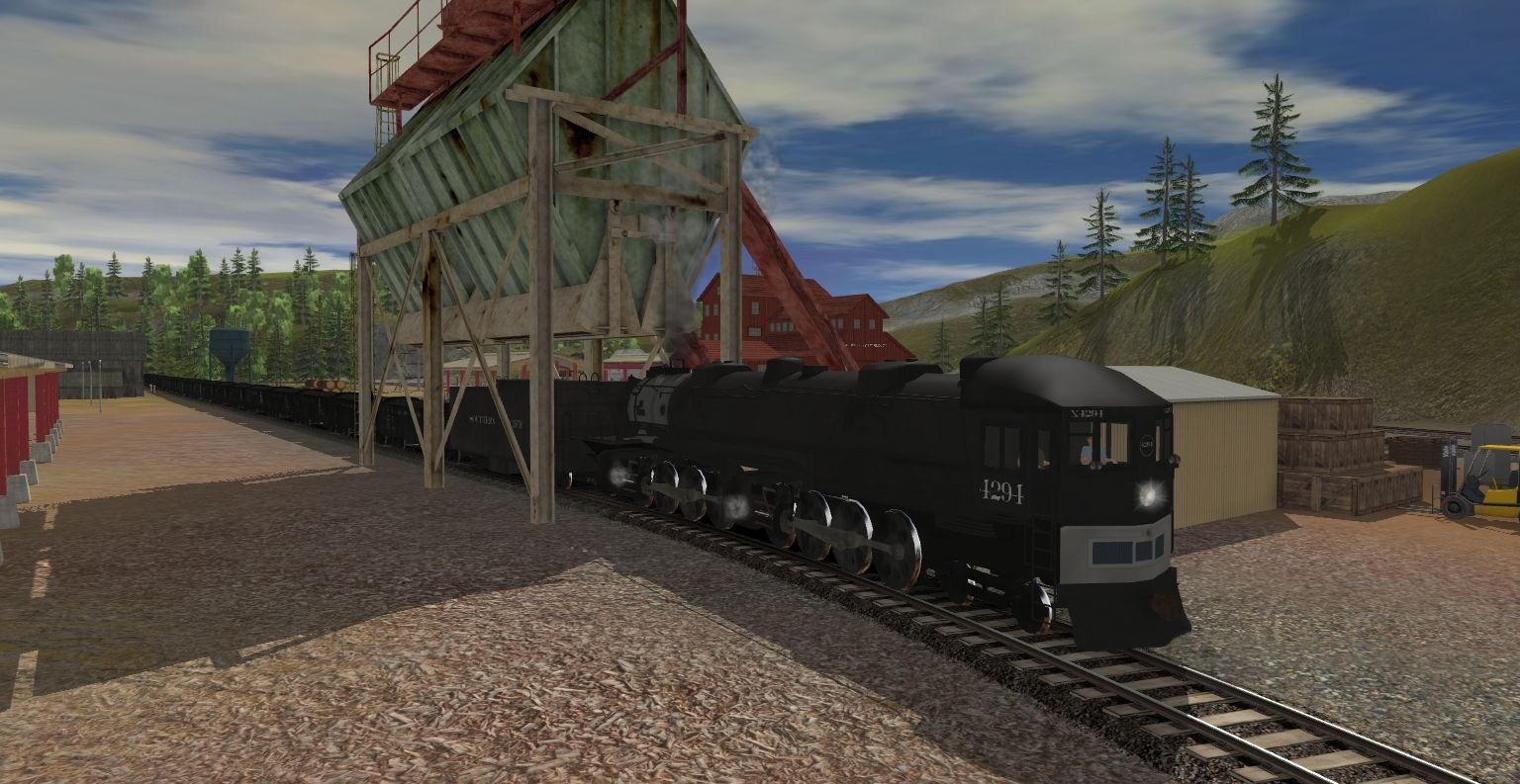 Tags: Trainz: A New Era, Kickstarter County, SP Cab Forward, Loco C44-9W BNSF Warbonnet BNSF Front Logo, Loco SP Cab Forward AC-12 #4294 Brass, SP Cab Forward Tender, C&O Coal Gondola, TTX Patched 89ft TOFC Flatcar, Loco SP Cab Forward AC-12 #4294 Tender Brass