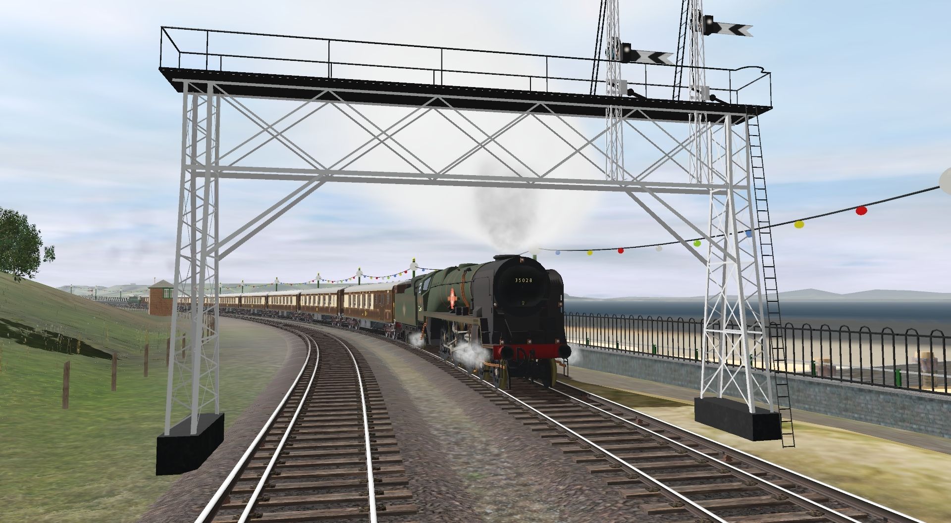 Tags: Trainz Railroad Simulator 2019, ADL Railroad 5 SOUTHv1 016, ADL Railroad 5 SOUTHv1 016 - Default, RB Merchant Navy, BR Class 33_0 Green (no yellow), Class 59 Yeoman engine, RB Merchant Navy 6000 Gal Late Logo Tender, Pullman K Brake Third, Pullman K Parlour First, Pullman 1951 Bar, Pullman 1951 Parlour First, Pullman 6PUL Kitchen Composite, Pullman 5BEL Kitchen First, BR PGA Foster Yeoman 2