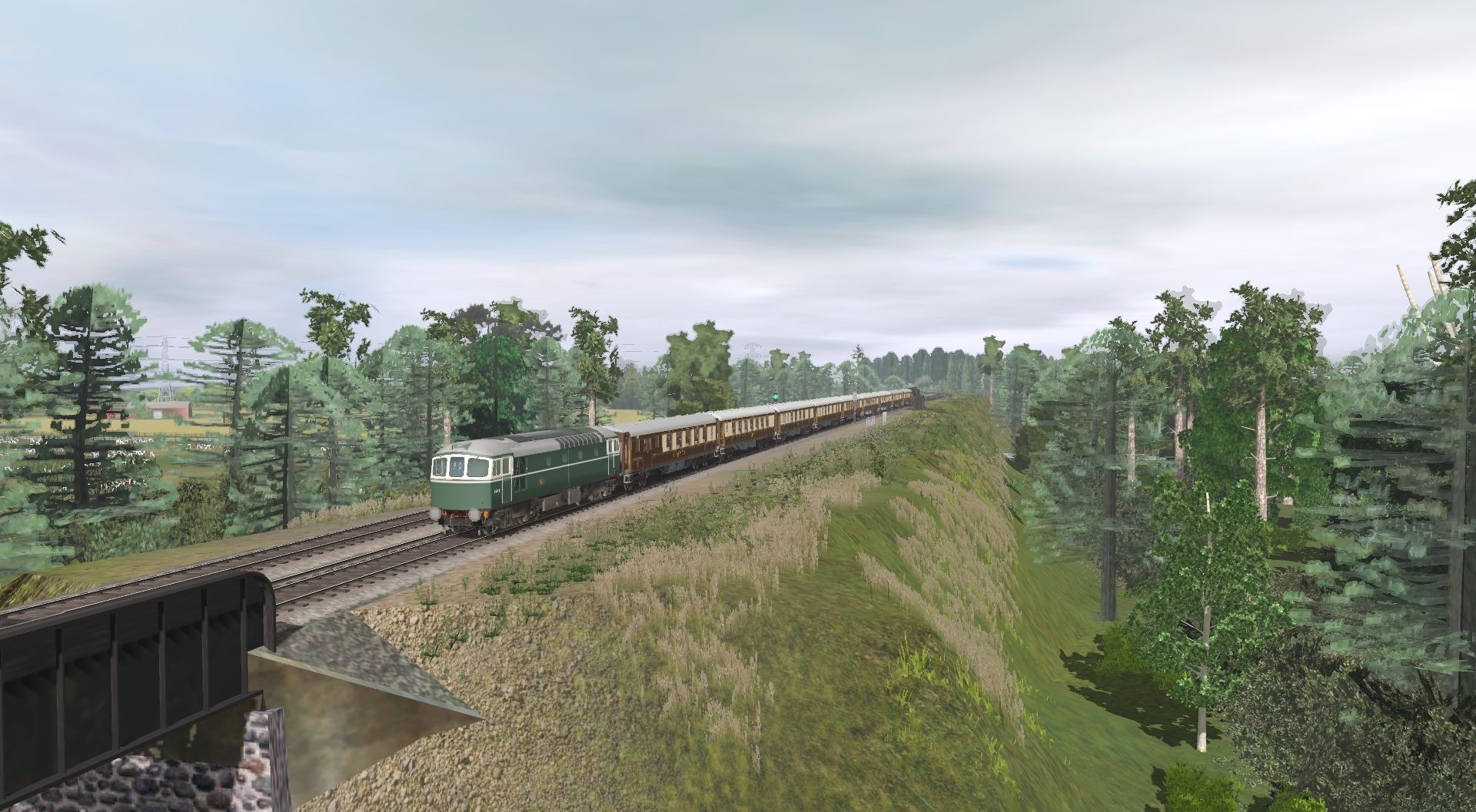 Tags: Trainz Railroad Simulator 2019, ADL Railroad 5 SOUTHv1 016, ADL Railroad 5 SOUTHv1 016 - Default, BR Class 33_0 Green (no yellow), RB Merchant Navy, Pullman 5BEL Kitchen First, Pullman 6PUL Kitchen Composite, Pullman 1951 Parlour First, Pullman 1951 Bar, Pullman K Parlour First, Pullman K Brake Third, RB Merchant Navy 6000 Gal Late Logo Tender
