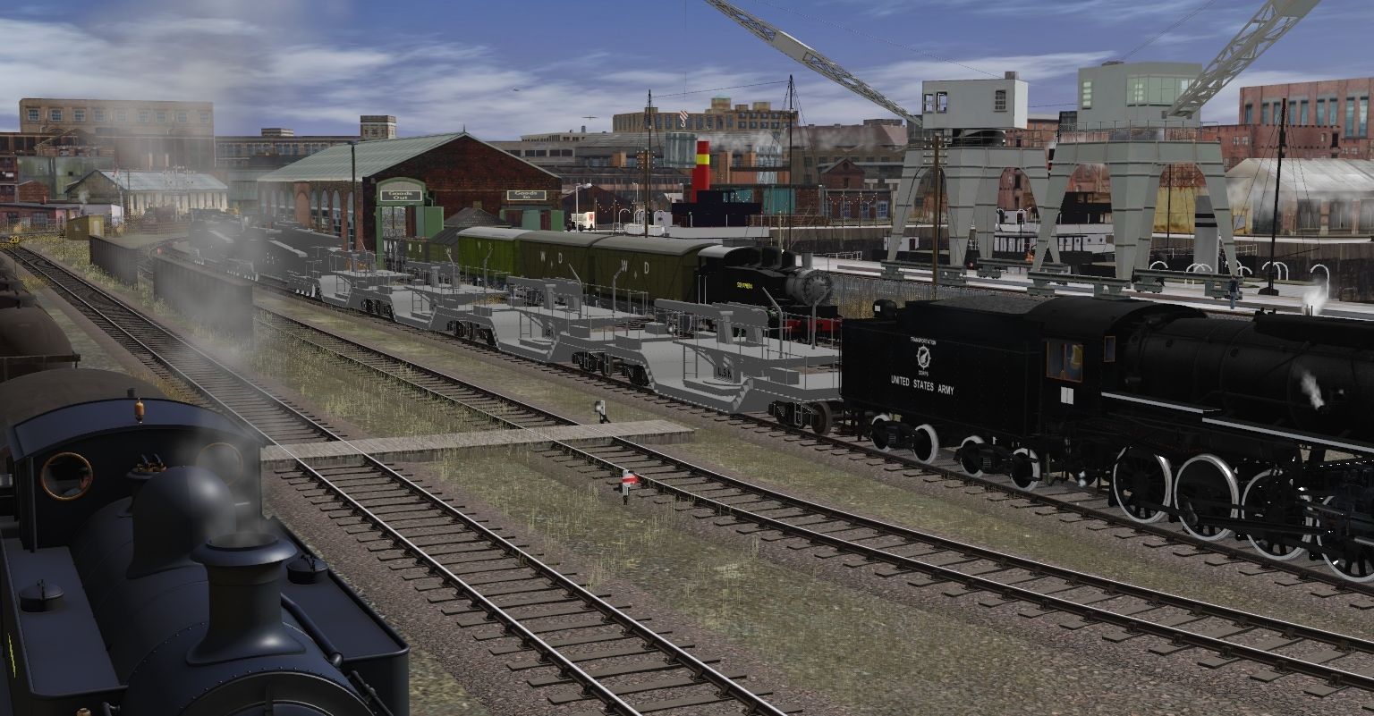 Tags: Trainz Railroad Simulator 2019, Dearnby & Region V3: UK 1950's - 60's v1 449L, LBSCR E2 Bulleid Black Long Tanks, 3DZ USATC S160 Class, USA tank, Southern Railway Class E1R 0-6-2T V3 (Post-1941) TS2012, WD Hudson shunter, [SR] 10T Brake Van, WD conflat detailed, 3DZ USATC S160 TENDER, War Dept (Naval Store) 18 foot Tanker Early detailed - weathered, 8 inch US Railgun 1918, War Dept (Fuel Oil) 18 foot Tanker Early detailed - weathered