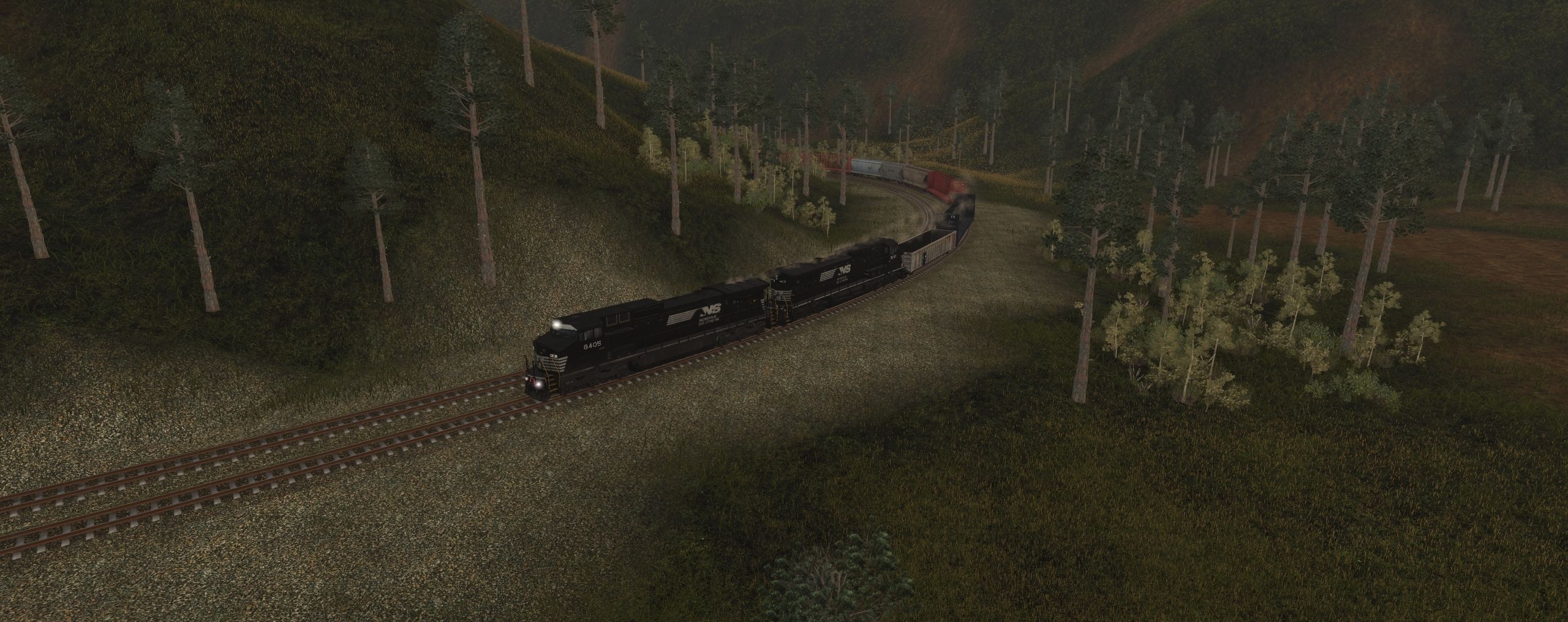 Tags: Trainz Railroad Simulator 2019, Kickstarter County 2, NS Horsehead C40-8W, NS Horsehead C40-9W, 52ft Gondola CR, CVRY 73ft Centerbeam, 52ft Gondola NS ex-SOU, 73ft Centerbeam NOKL, SOU #99149 3 Bay ACF, SOU 2 Bay Hopper ACF 2971, SOYX Centerflow Hopper #98164, 73ft Centerbeam CSXT, HS 50' ACF Boxcar Series 1