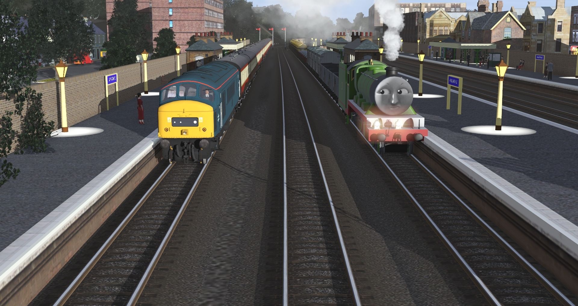 Tags: Trainz Railroad Simulator 2019, Rosworth Vale - LNER (Rev.1), Default, TTTE - Henry the Green Engine 2010 (New Shape), BR Class 46 46035 blue preserved, TTTE - Stepney the Bluebell Engine 2010, TTTE - Henry's Tender 2010, BR Stanier FK, TRW - LMS Banana Van, TRW - BR 13T Sand Wagon, TRW - BR TPO Stowage Van, TRW - BR TPO Sorting Van, BR Stanier TO, TRW - BR MK1 Composite Coach