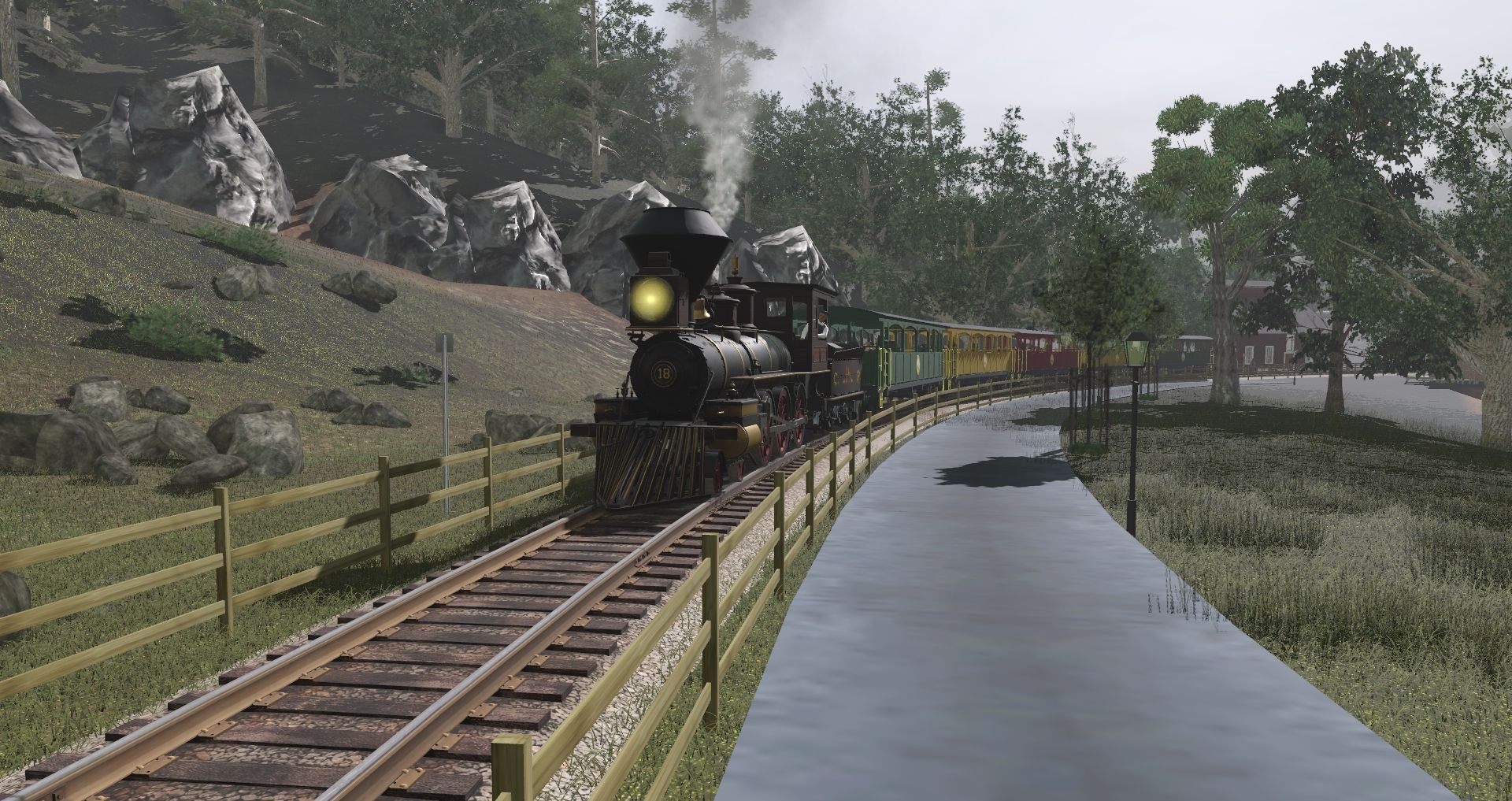 Tags: Trainz Railroad Simulator 2019, Tweetsie - Mattified, Default, Central Pacific 18 (2nd) Brown, Miniature Steam Engine 6, Chairlift car, WVRR No. 32 'Desatoya, Central Pacific 18 (2nd) Tender Brown, CASS_Excursion_Car_8-Green, CASS_Excursion_Car_8-red, CASS_Excursion_Car_8-Yellow, Mini coach, SRC 15 Open Window Hello Dolly, WVRR No. 32 Tender
